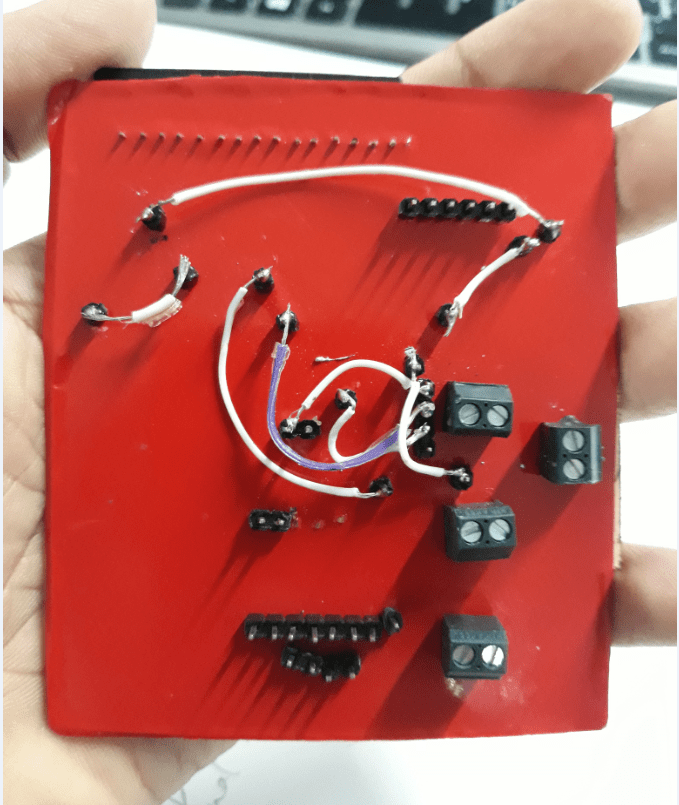 The board was designed using Eagle software. Since the number of components were more , despite my best efforts I could not generate paths using single layer. So i switched to two layer format y using jumper wires. The circuit was complete.