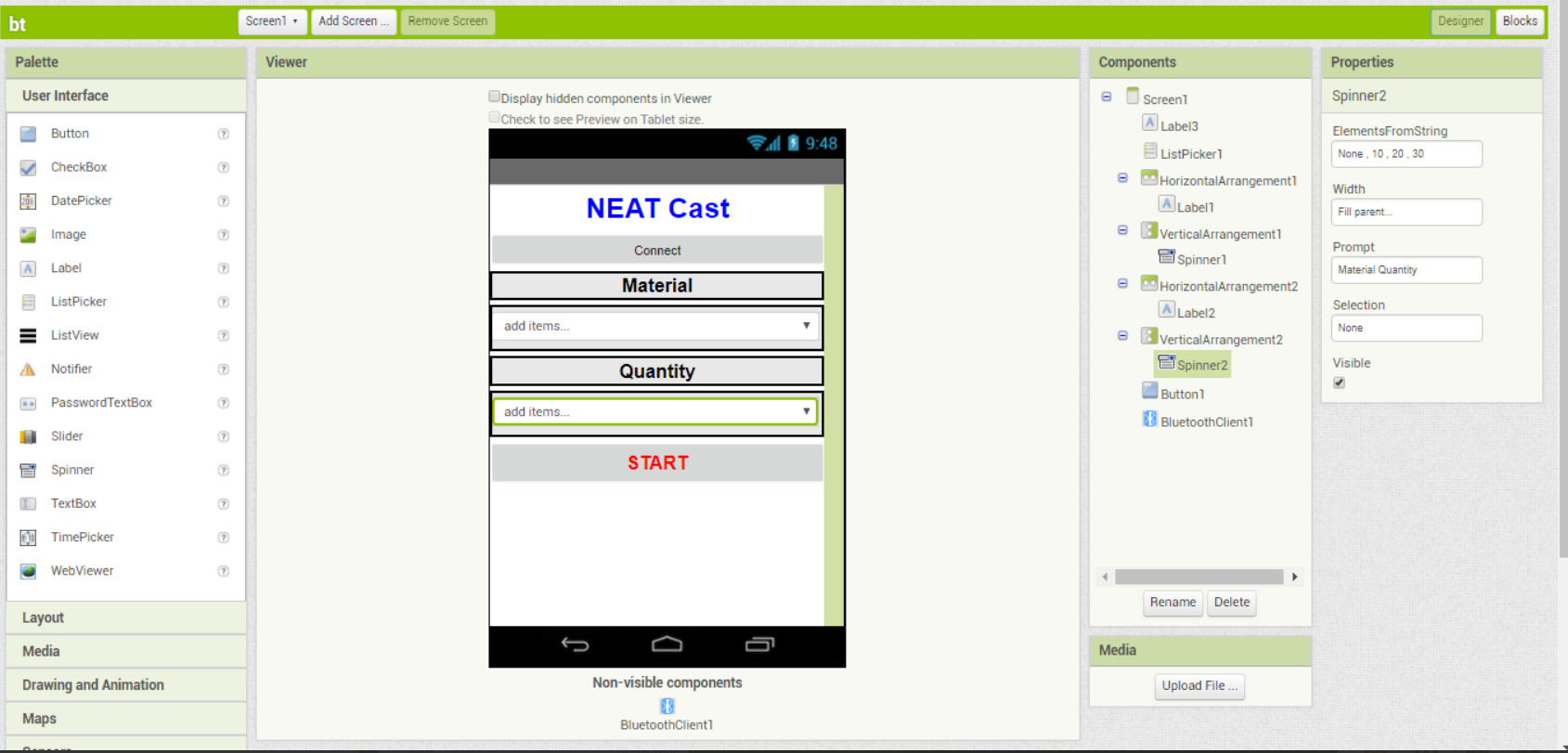 The machine is controlled via a mobile app where the user selects the material intended for casting and chooses the amount of material that is required to be dispensed.