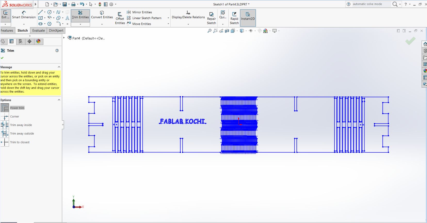 The fourth week is where the design tools are going to become handy. Prof Neil explained about various cutting tools available , various types of Laser etc. The precautions needed to be taken before operating the Laser machines were also explained. It is mandatory that the operator stays with the machine throughout the operation. This is because since the machine cuts by focusing a large amount of energy at a particular point, there are chances that the work may catch fire. The machine cuts various material however metals cannot be cut using Laser. The reflecting surface will reflect the light back into the laser causing severe damage to the machine. Also random plastics cannot be used as work material. All laser cutting machines are equipped with an exhaust system that draws out the poisonous gases emitted during the cutting operation. The operator should wait for a minute or two before opening the lid of the machine to remove the work after the cutting is done.