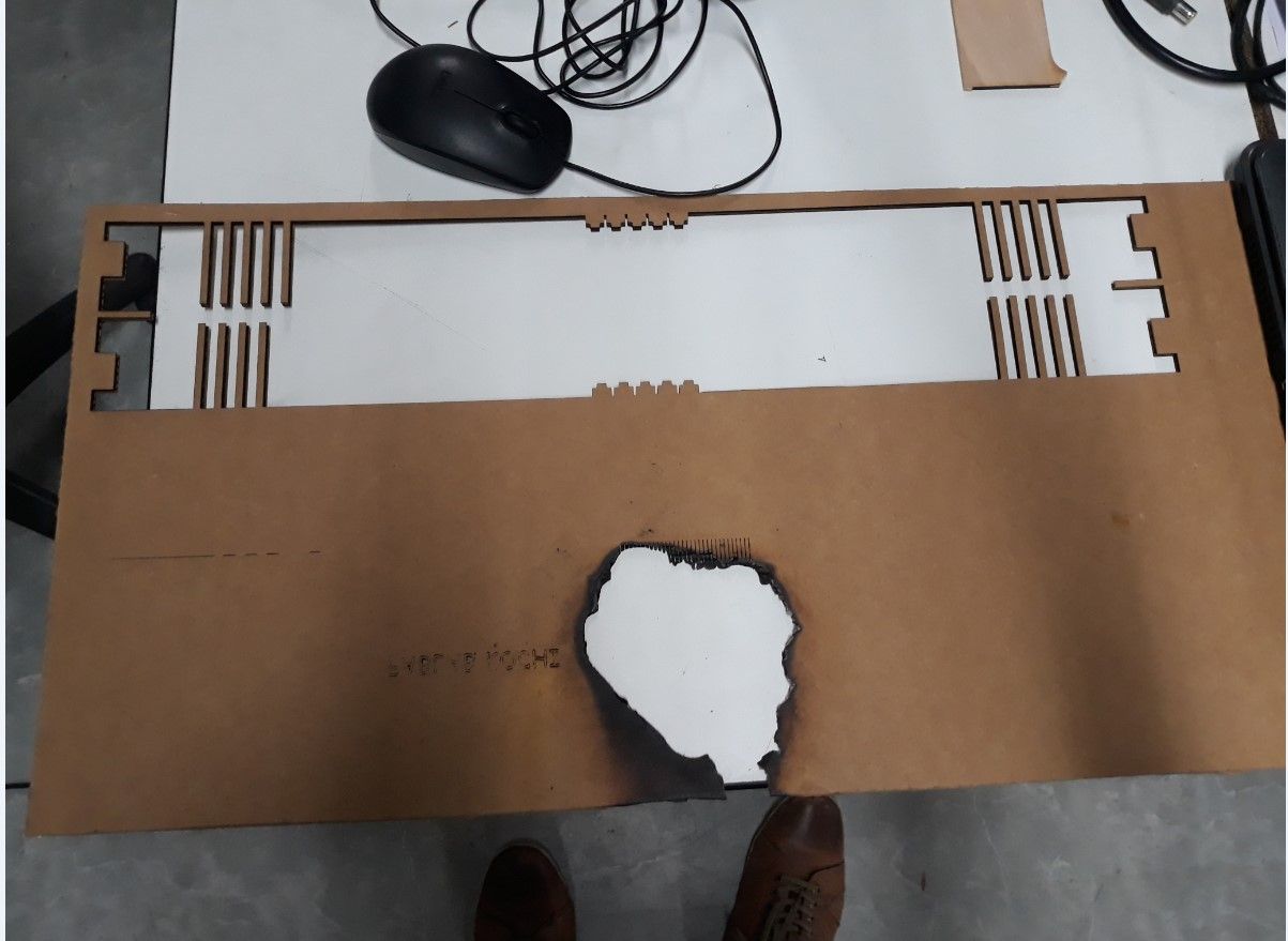 With all the necessary changes made the final cut was made. This time the cut was succesful. The new design had allowed for sufficient cooling time and the material did not catch fire. The end result was refreshing as this had taken me a really long time to do. Here are the images of the final cut piece.