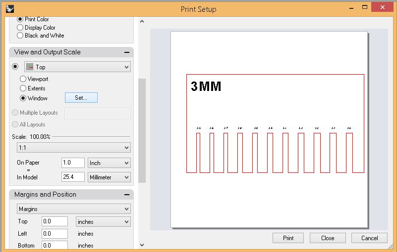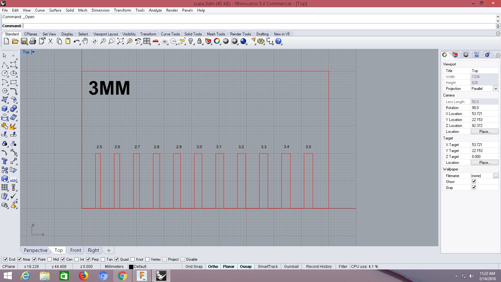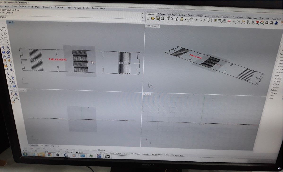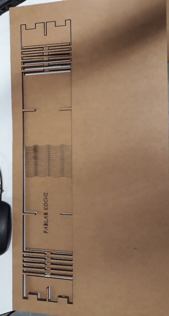 We then designed a kerf scale for 3mm Acrylic sheet. The design was made using Rhino.