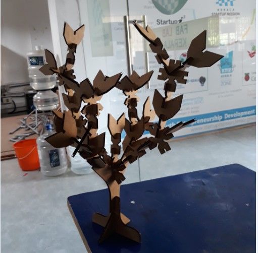 Getting a perfect fit with a living hinge was difficult. So I decided to change the design to make a tree. The design was made using solid works.