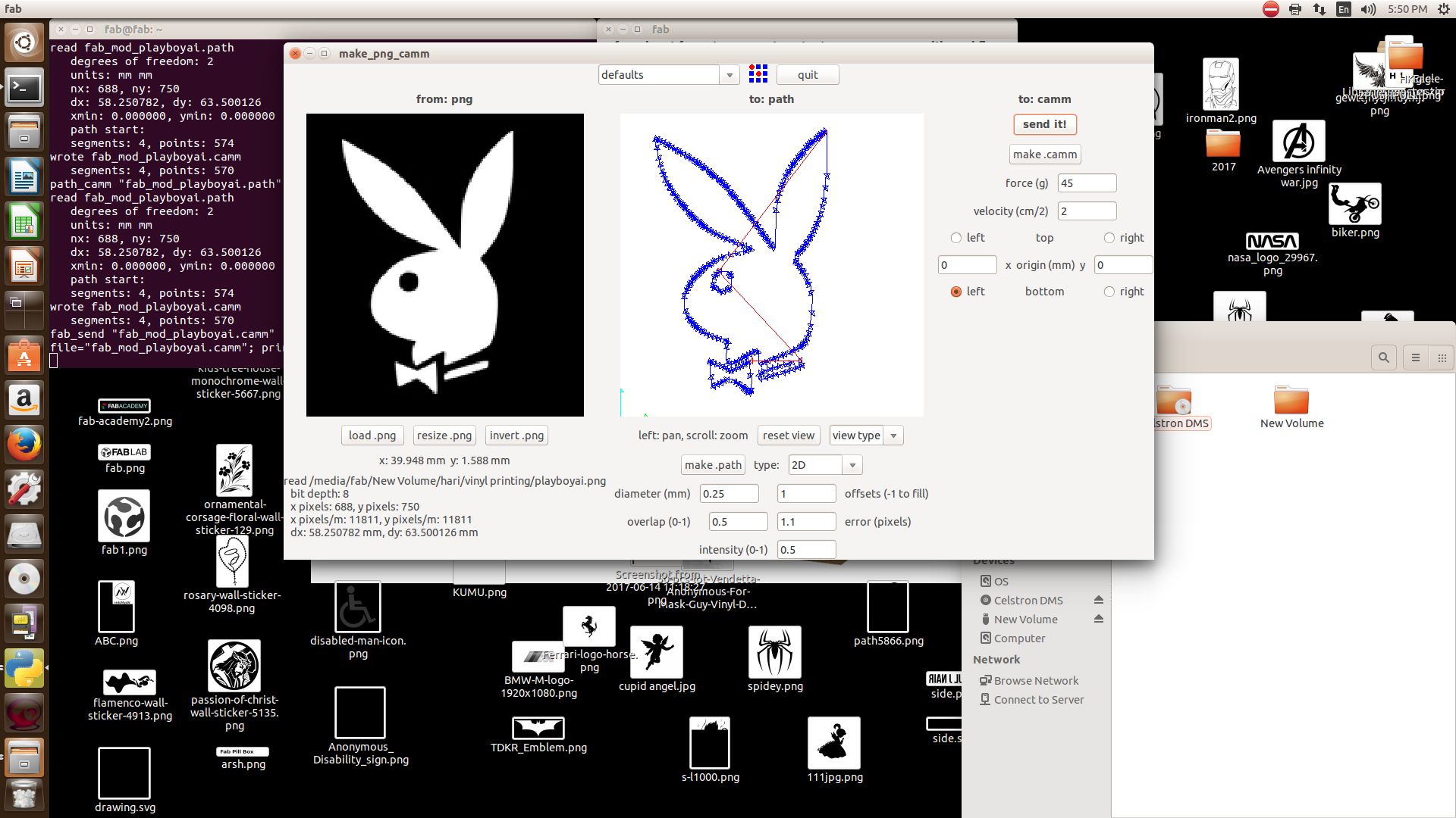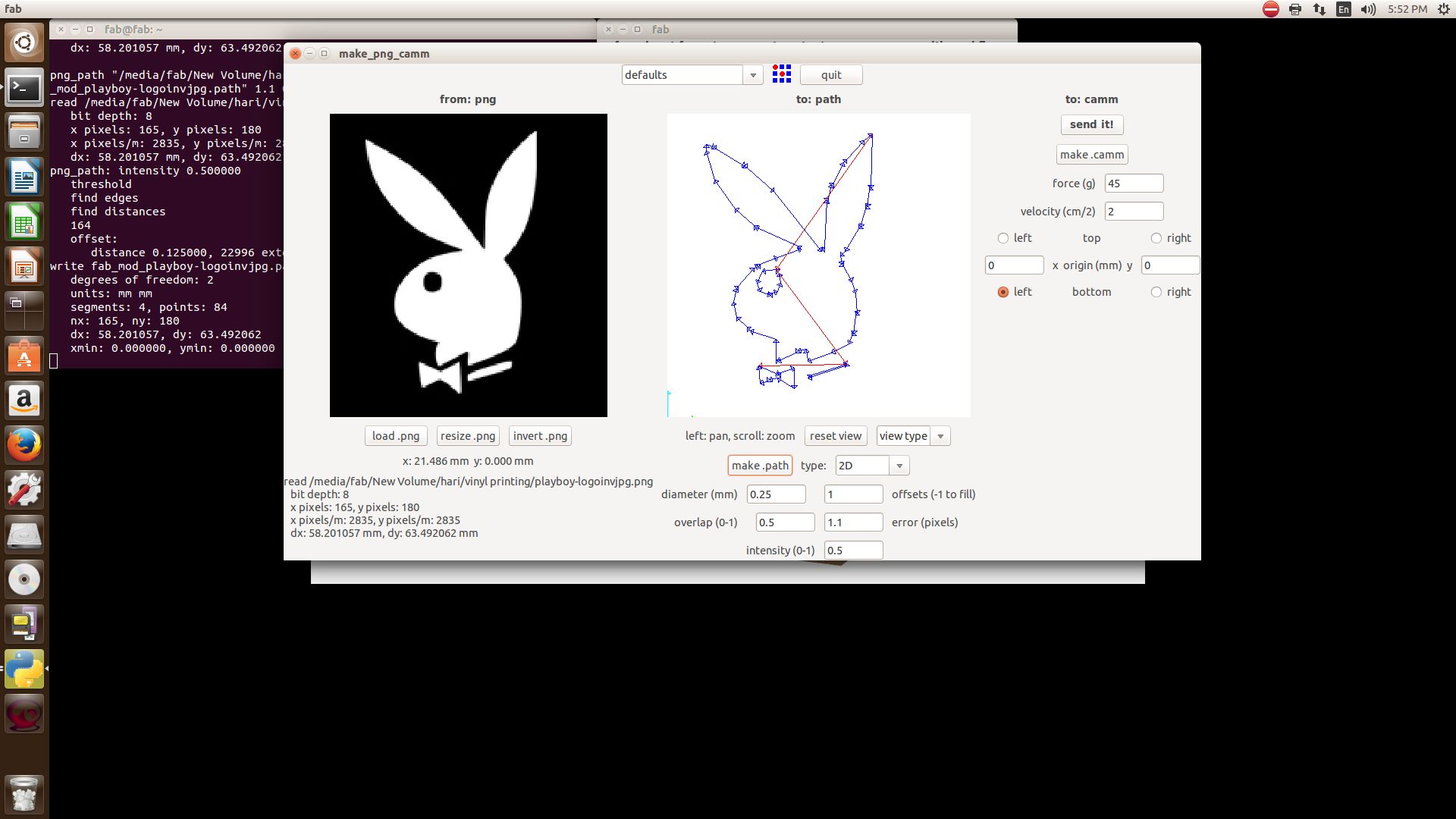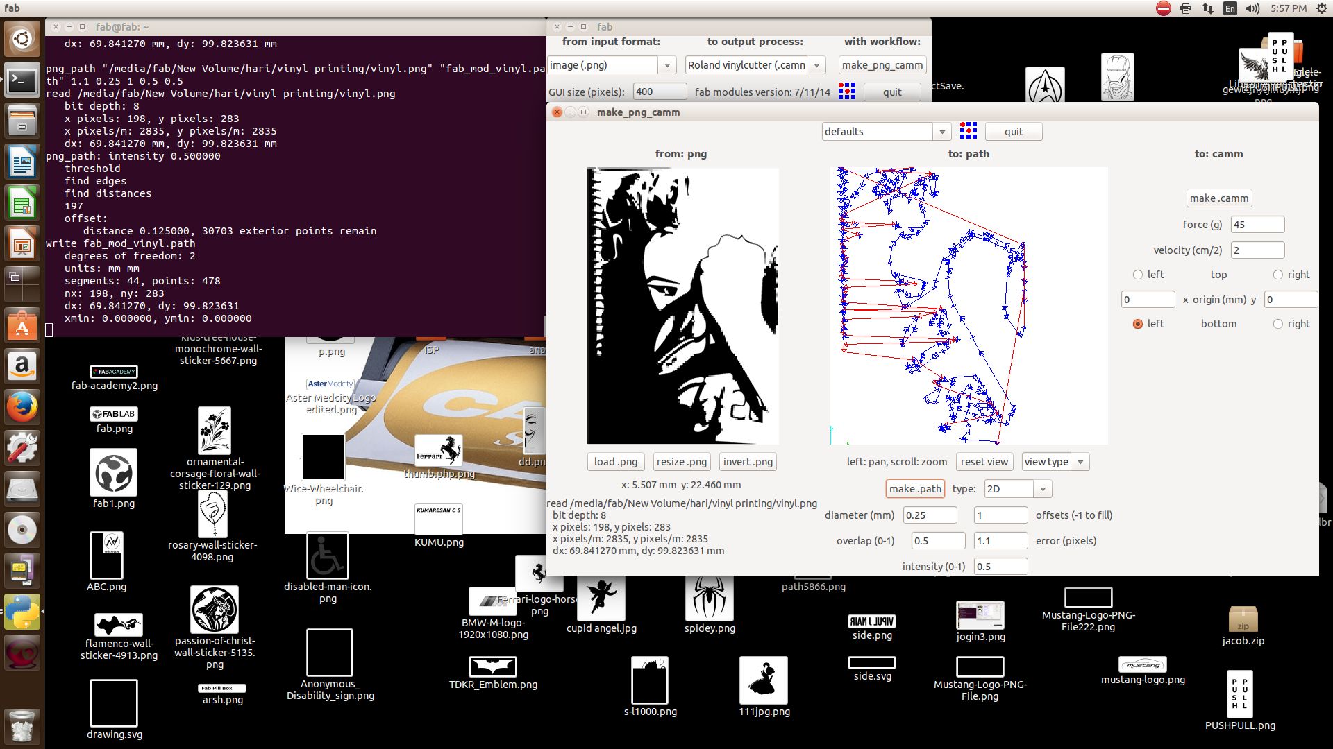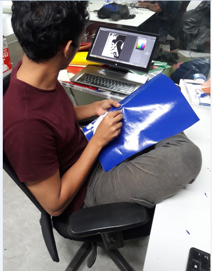 A vinyl cutter is a machine that cut the vinyl according to the design fed into the computer. A computer Controlled blade cut out the shape precisely using fab module.