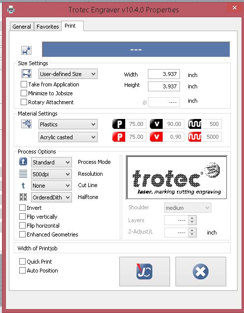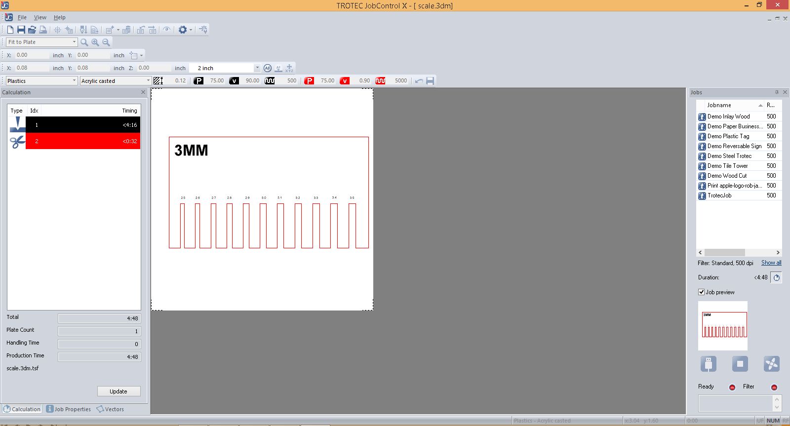 Setting machine parameters for 3mm acrilic.