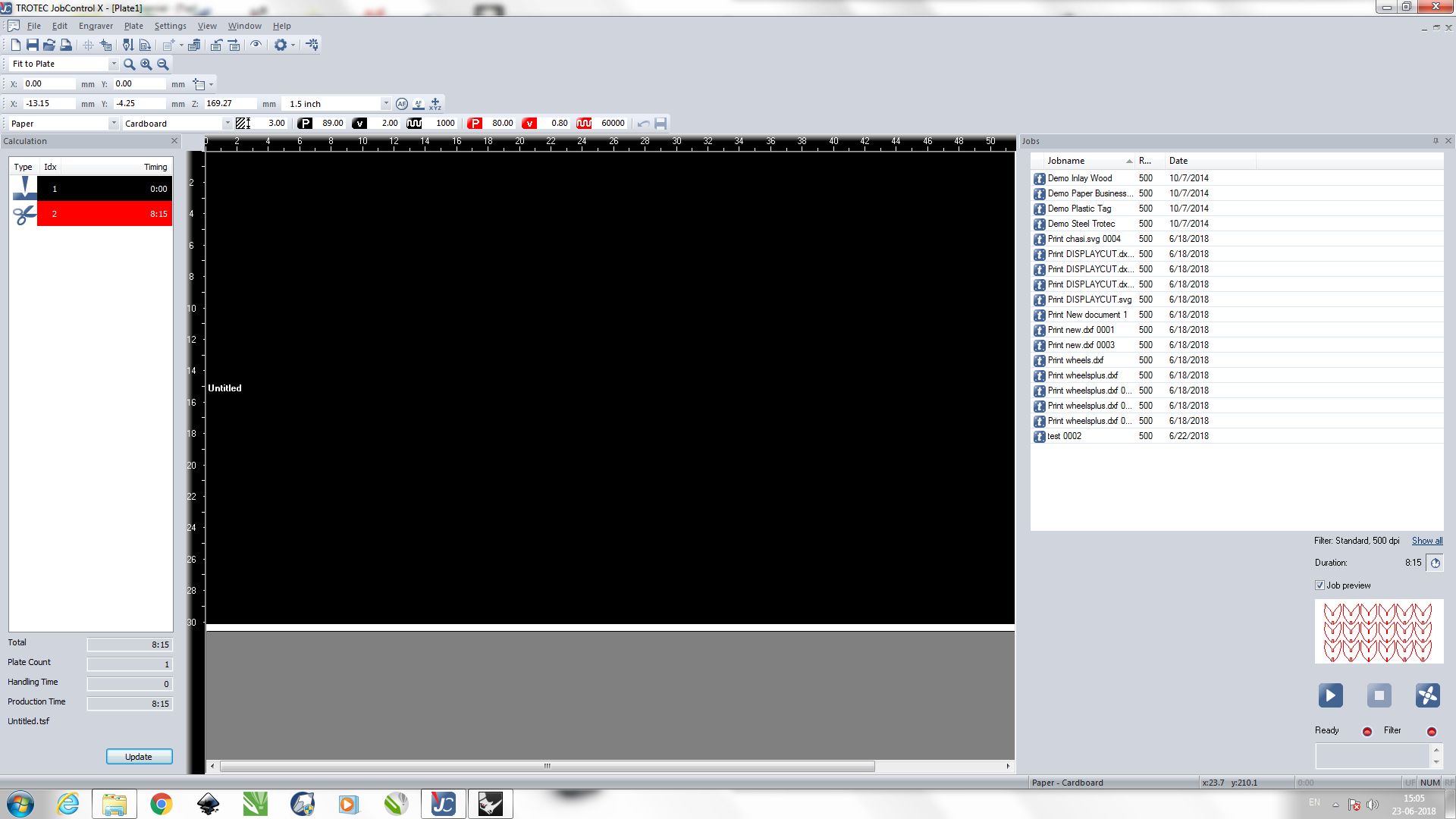 Select the design, set the print area and send the file to trotec using print command