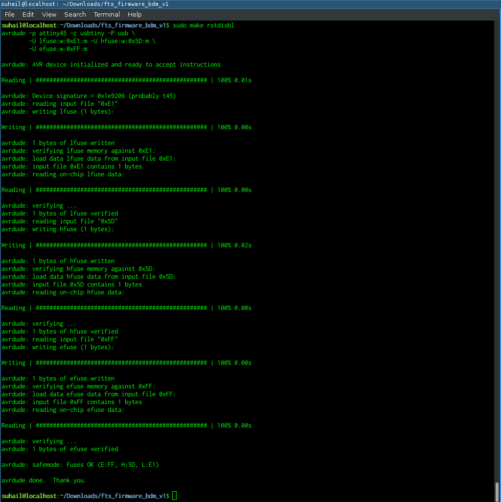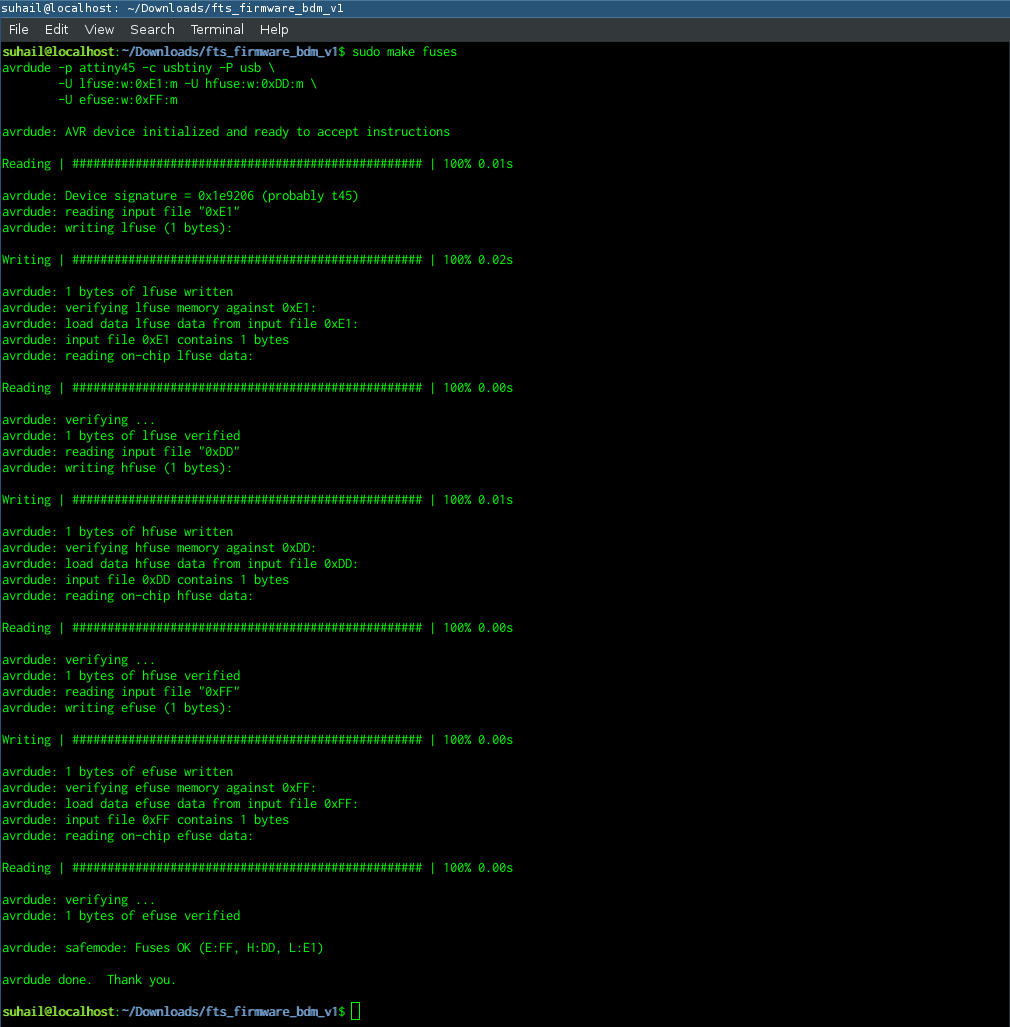 Run make fusesto setup the fuses. Use code