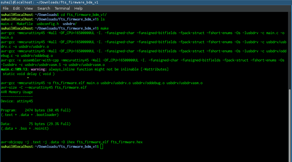 Run make command to generate hex file. After running this command, our