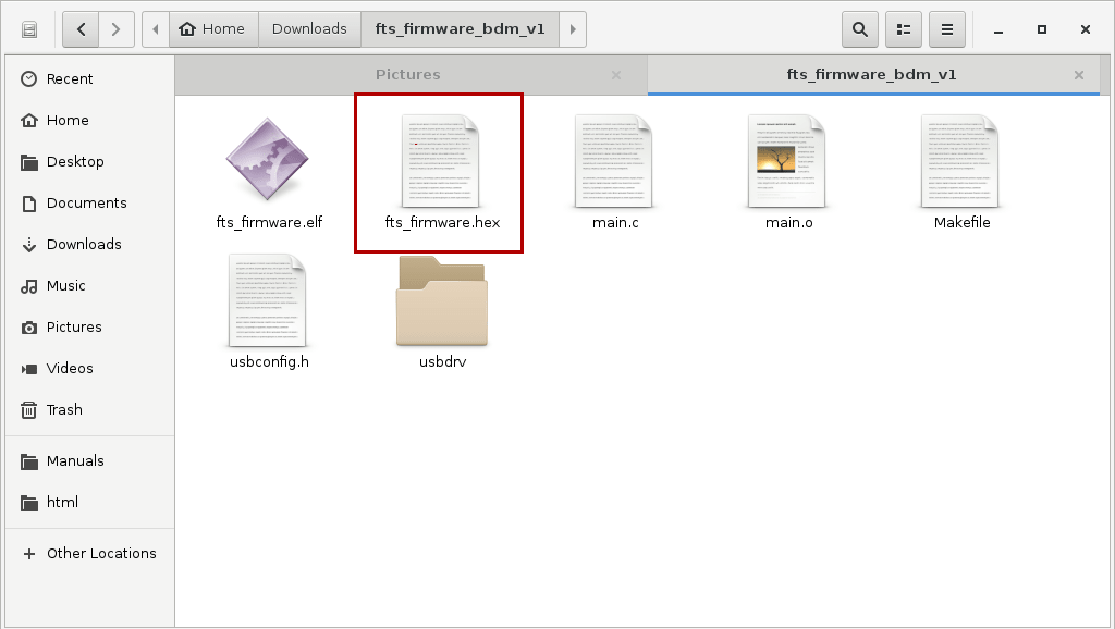 directory now contain a file named fts_firmware.hex.