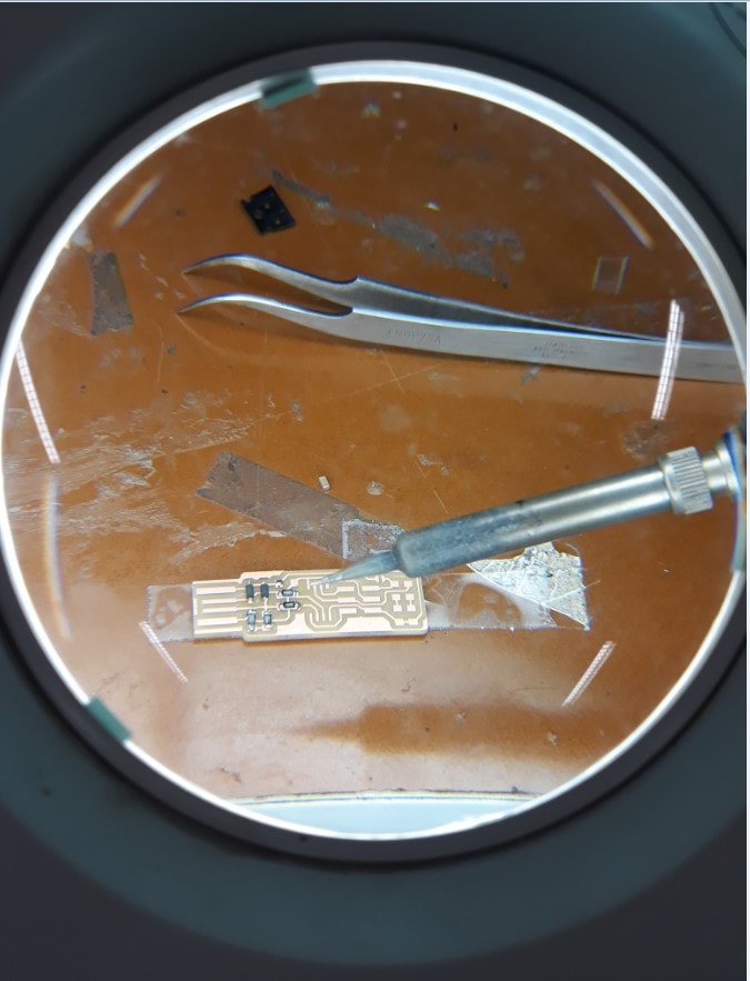Prof. Neil talked us through PCB milling, soldering components and techniques