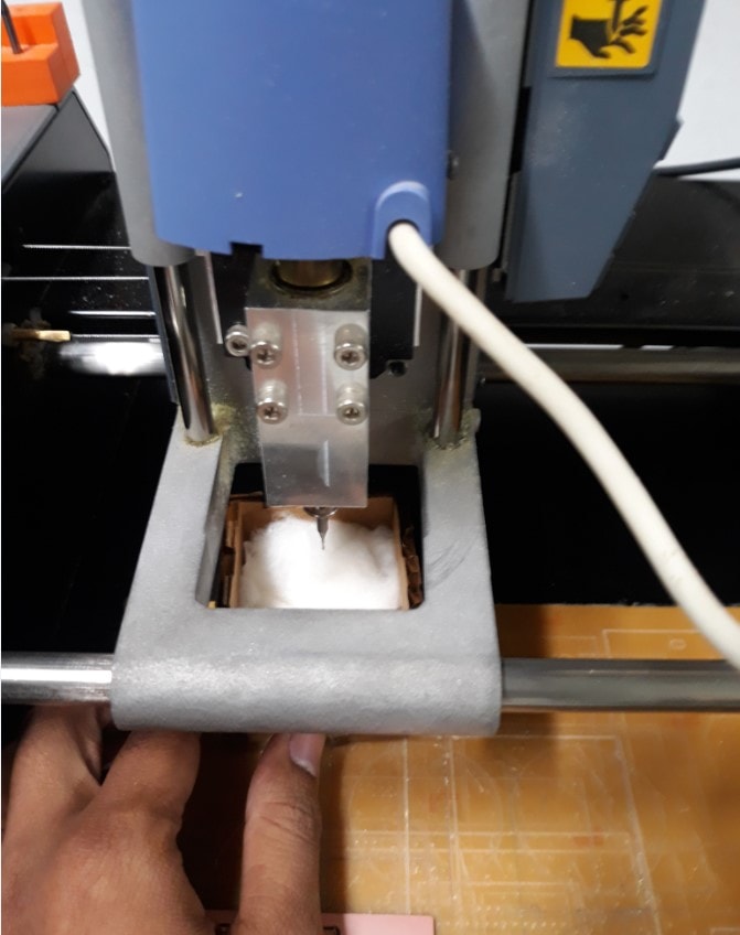For making the PCB we perform both milling and cutting. Different bits are used for