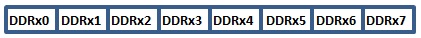 DDRx is an 8-bit register which stores configuration information for the pins of Portx. Writing a 1 in the pin location in the DDRx makes the physical pin of that port an output pin and writing a 0 makes that pin an input pin.