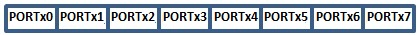 PORTx is an 8-bit register which stores the logic values that currently being outputted on the physical pins of Portx if the pins are configured as output pins. So to write values to a port, you write the values to the PORT register of that port..