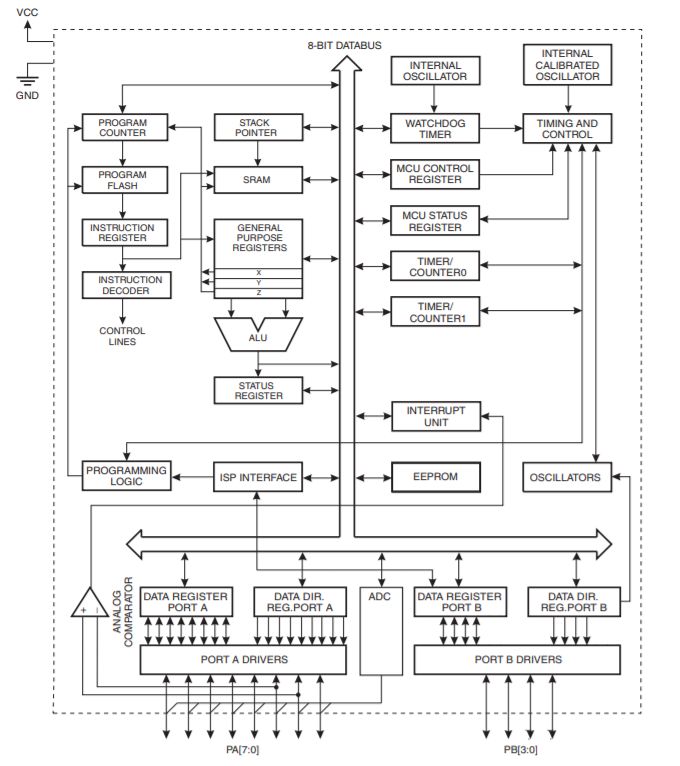 It's a low power AVR® 8-bit microcontroller based on the RISC architecture.It have 12 GPIO pin's.