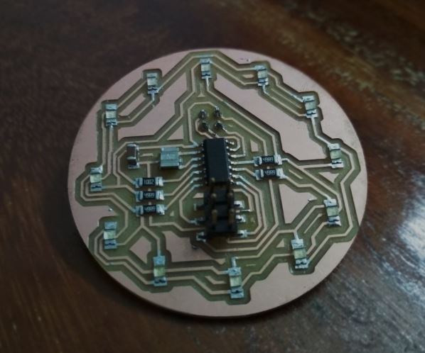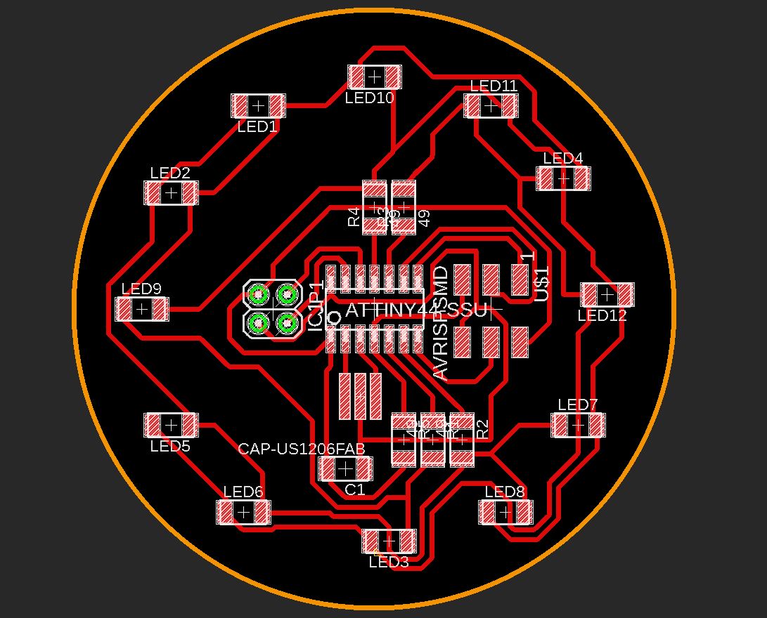 Next I wanted to make a circular LED array taht I'll be using for my final project. I'll making an array of 12 LED and for controlling them I'll be using a Attiny44 MC.I'll have to use a method called Charlie Plexing since I dont have required LED pins in the ATtiny 44