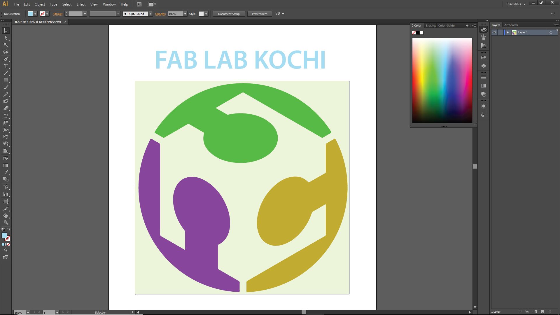 The vector software I wanted to try was Adobe Illustrator. I've seen my friends work on different logos and symbols in illustrator. So I thought of doing something with the Fab lab logo. I took the trace of the fab logo and convert it into separate shapes so that I can play around with different colors in these shapes. I also tried adding some texts and background colors.