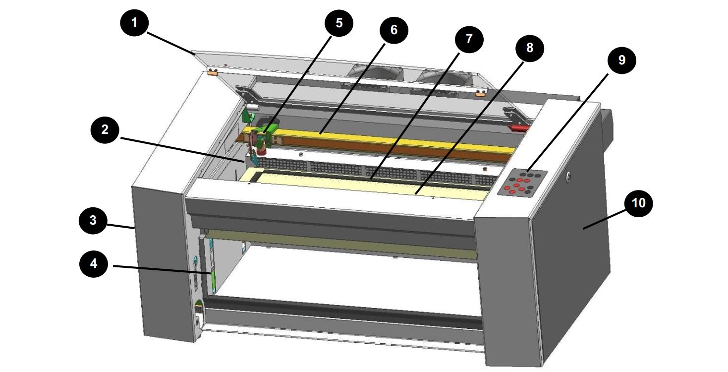 Before cutting we have to first set the focus of the laser. For this, a small component is placed on the laser generator and the laser bed is moved up till this component falls. This is the focusing point of the laser. Now, we have to set the origin using the arrow keys in the machine.