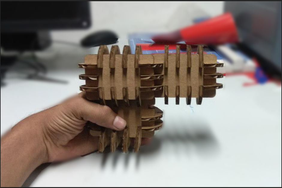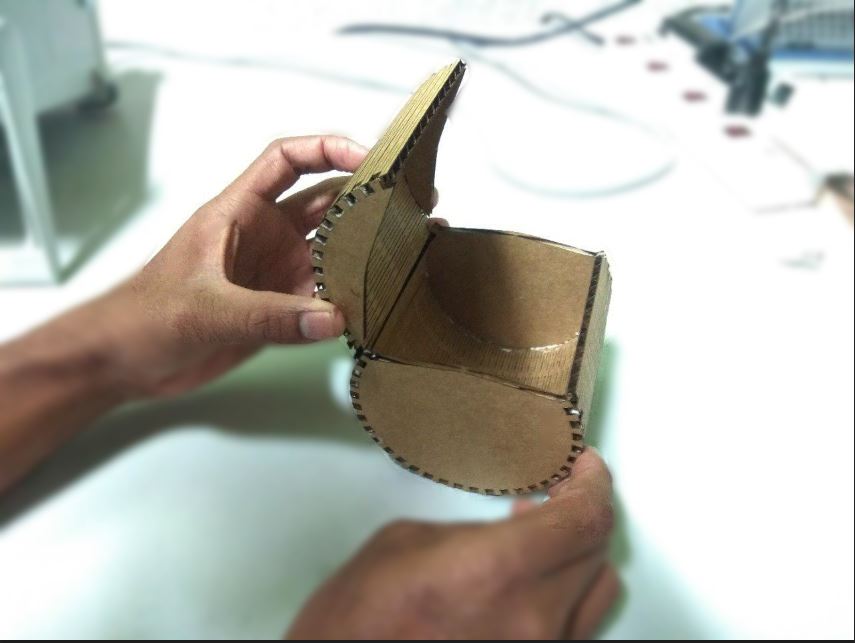 Another thing I have to consider while designing was the kerf value.Kerf is simply the amount of material removed by the cutting process. In our case, it is the diameter of our case beam. So while designing we have to put a slight offset to account for this kerf loss. Before cutting I measured the thickness of the cardboard piece using a vernier and it showed a value slightly above 4mm. So, I thought to put a 4mm width for the slots (considering the kerf loses) where the components mate.The width of the slots in my first design was 3mm (I thought the cardboard pieces were of 3mm thickness), But thanks to the parametric design all I had to do was to change this value to 4mm and all other values changed accordingly.