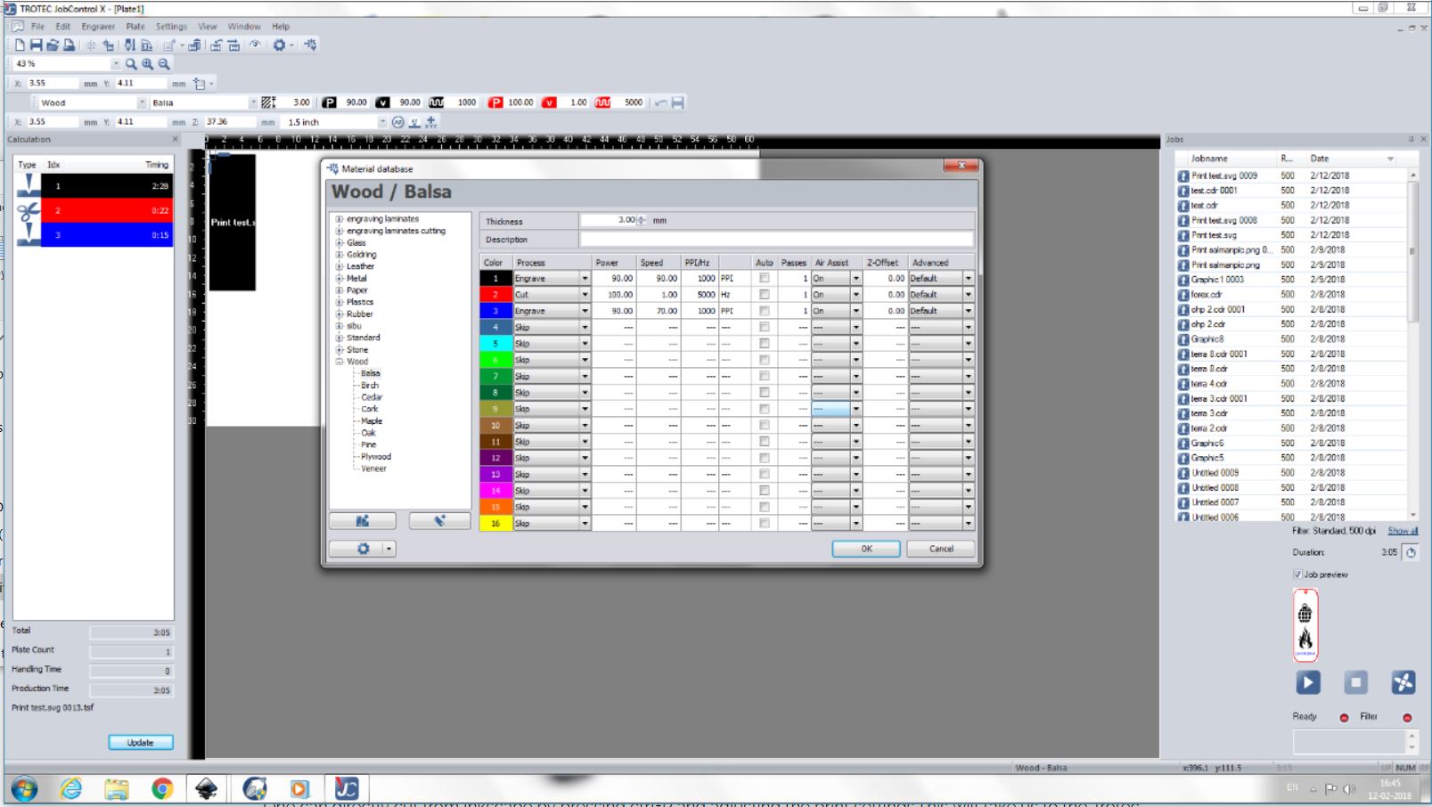 One can directly cut from Inkscape by pressing ctrl+P and adjusting the print settings.This will take us to the Trotec software where we can further select different materials, different power, and velocity options and can assign specific colors for specific type of cut and engraving