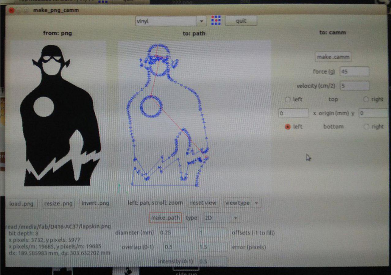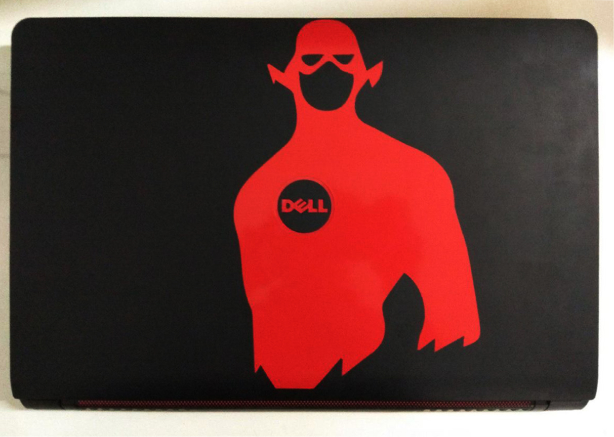 After the test print, I went for the laptop skin. The idea was to go for some superhero theme and to replace the symbol on their chest with my dell logo. I searched for some pictures and I really liked the picture of 'flash' which had a really nice rounded emblem on its chest. So I took the image to Illustrator and adjusted the dimensions in order to fit my dell logo. I then exported the file to png format and started cutting. I went for a red colored vinyl because my laptop already had a RED & BLACK theme on it. But on the first cut, I realized that I've made a mistake while editing in Illustrator. The image itself was quite big considering the laptop size and I further scaled it up to adjust to the dell logo which further increased its size and its length was higher than the width of the vinyl rolls. So, only half of the image was cut on the vinyl.