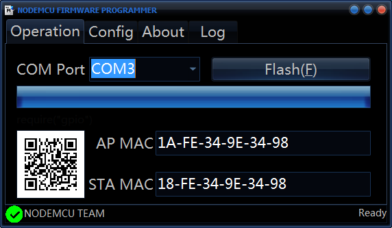 Just click flash and you can burn firmware to ESP8266. Before you doing it,Press the Flash Button.