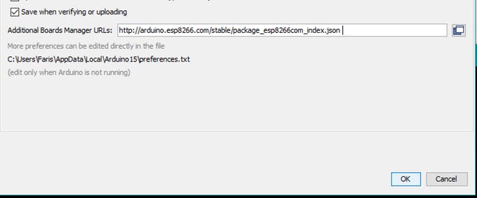 http://arduino.esp8266.com/stable/package_esp8266com_index.json And click OK.