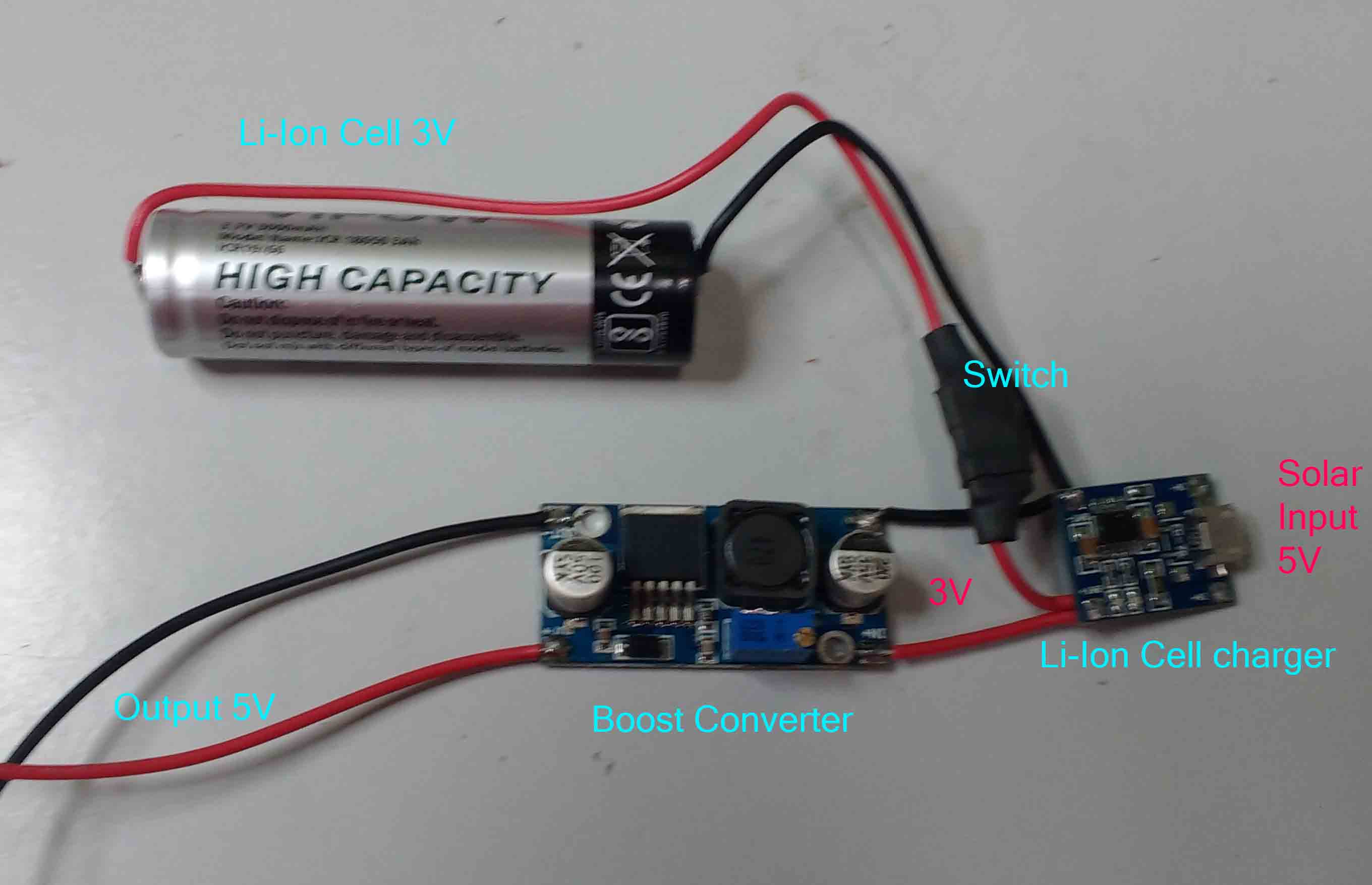 The solar panel producess 5 V but the terminal voltage of my Li-ion cell is 3.7v So to charge my cell by maintaining the charging current I need to have a battery charging circuit . Normaly Li-ion cells have a very low internal resistance so if we apply a higher voltage a large current may flow and the I2Rt heat loss may damage our cell .So usually we needs a charging circuit for controll the current . But since my solar panel only produces a maximum current of 162 mA I thought It won't be a problem for me . But when I searched the web there were a lot of people using a charging circut .Don't know why but due to that I also decided to use the charging circuit.