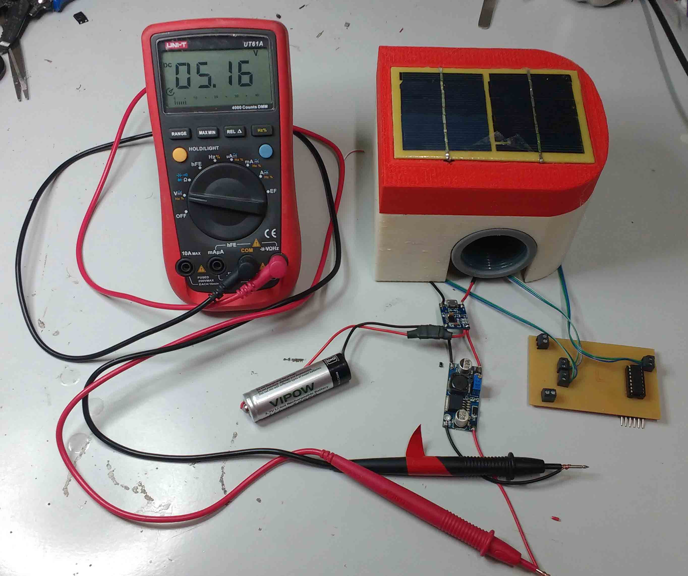 When the solar panel attached to the remaining modules and adjusting the potentio meter .We can see that the terminal voltage now is 5.16V.