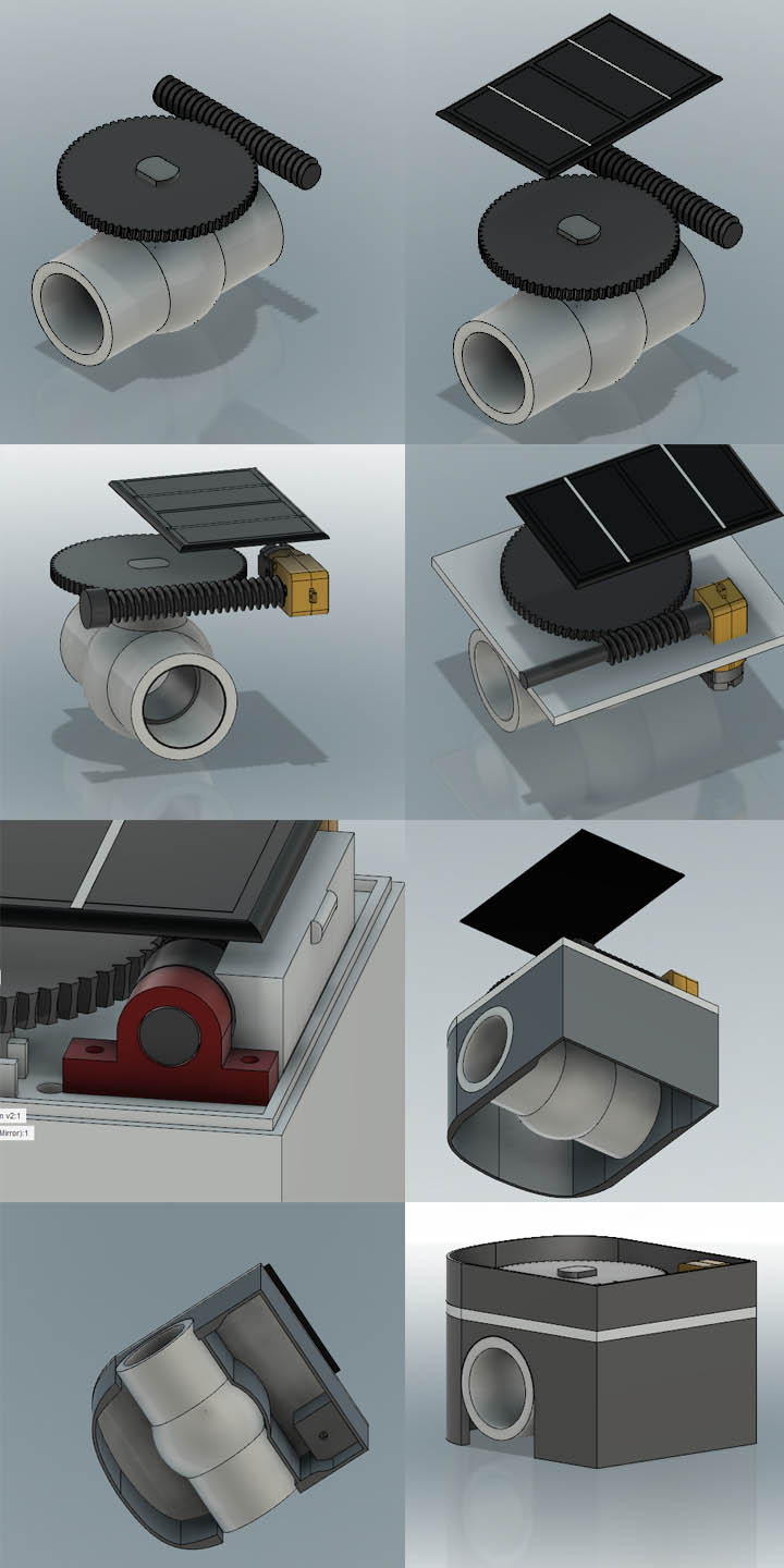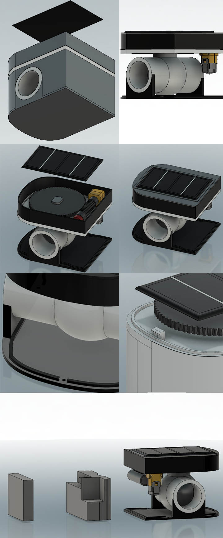 I made the enclosure as 3 different parts .A base which support all the mechanical and electronics parts,A bottom cover to hide the bottom portion also protect the battery and electronics from external enviournment factors,A top portion to support the solar panel and also for protecting the motion mechanism.