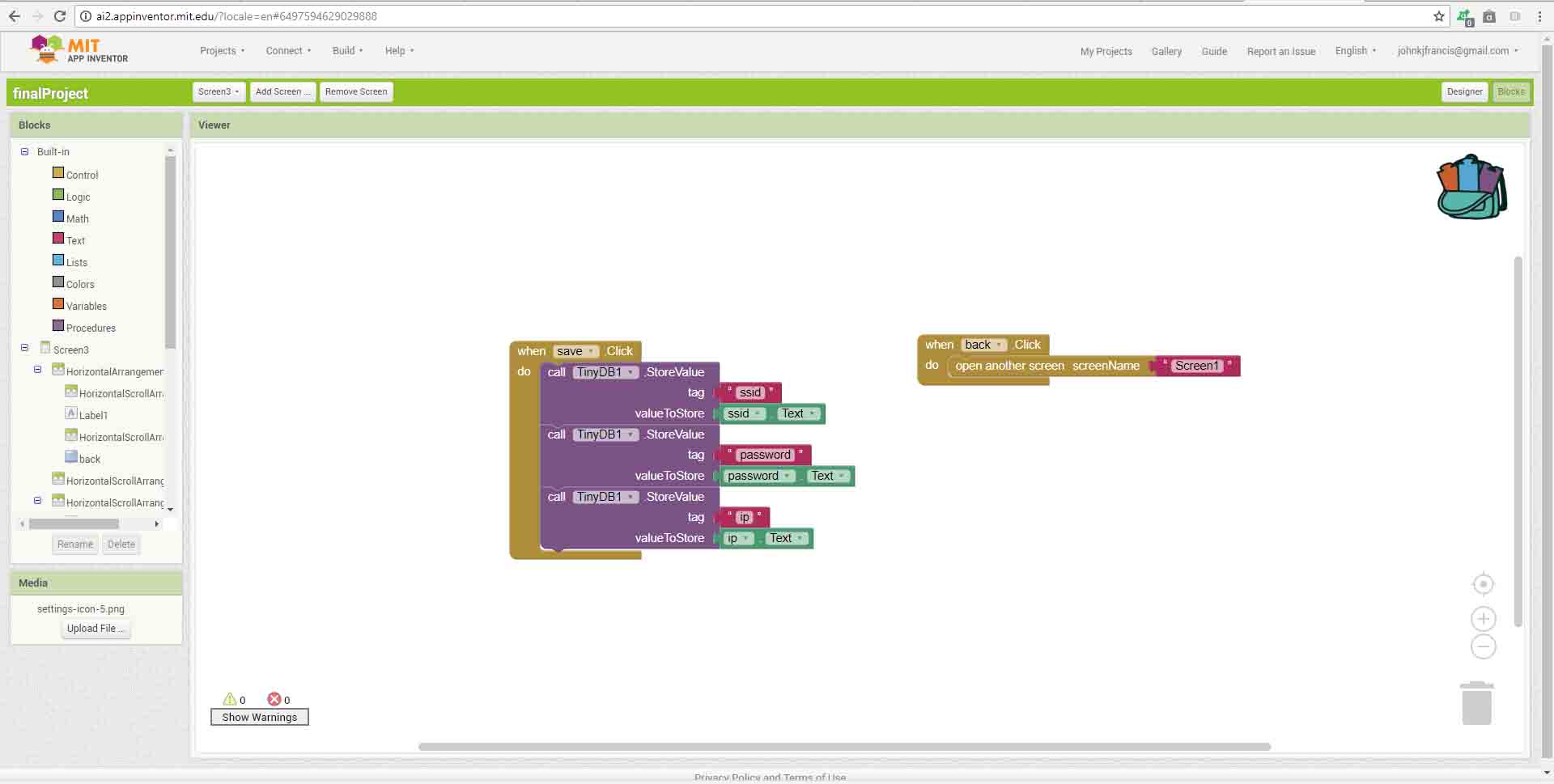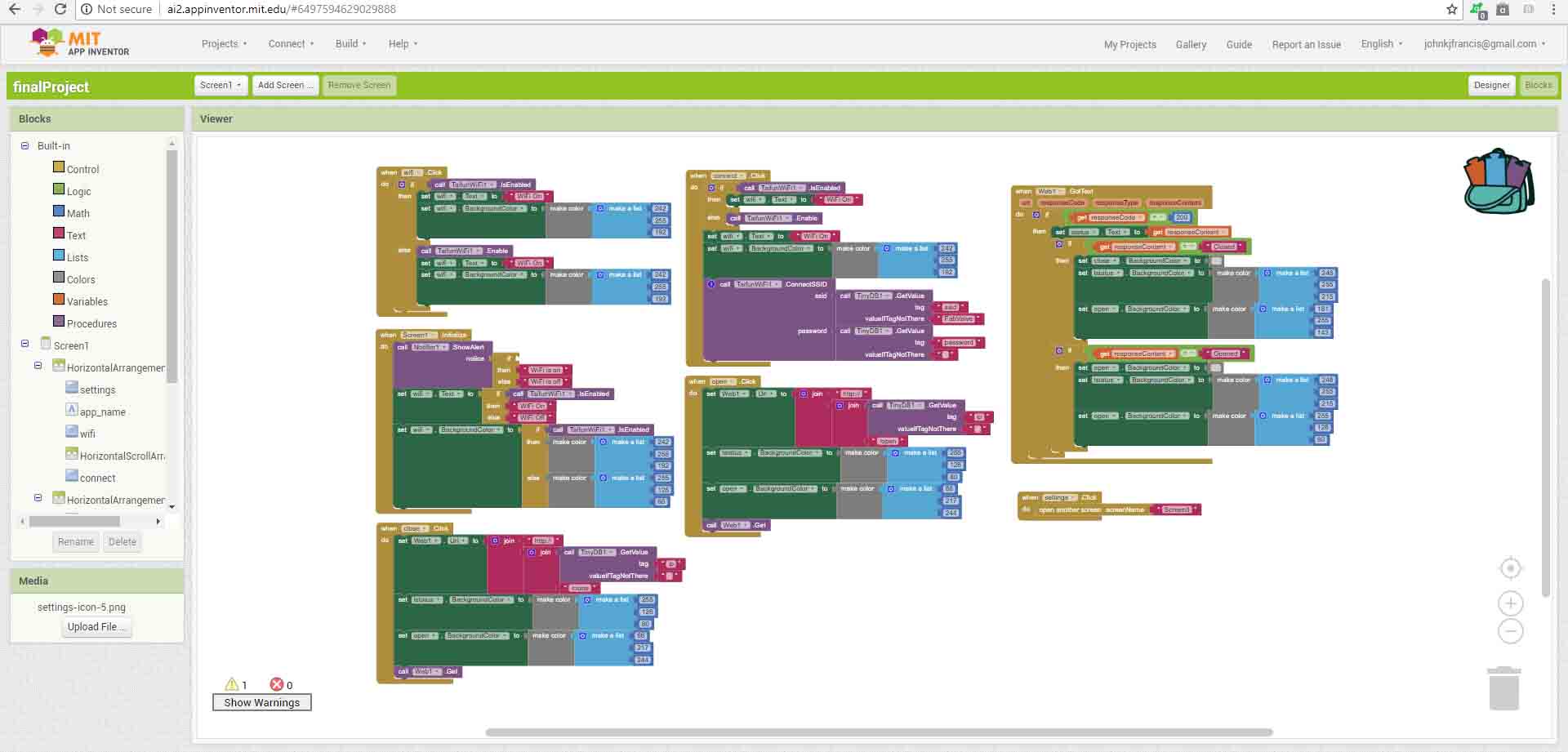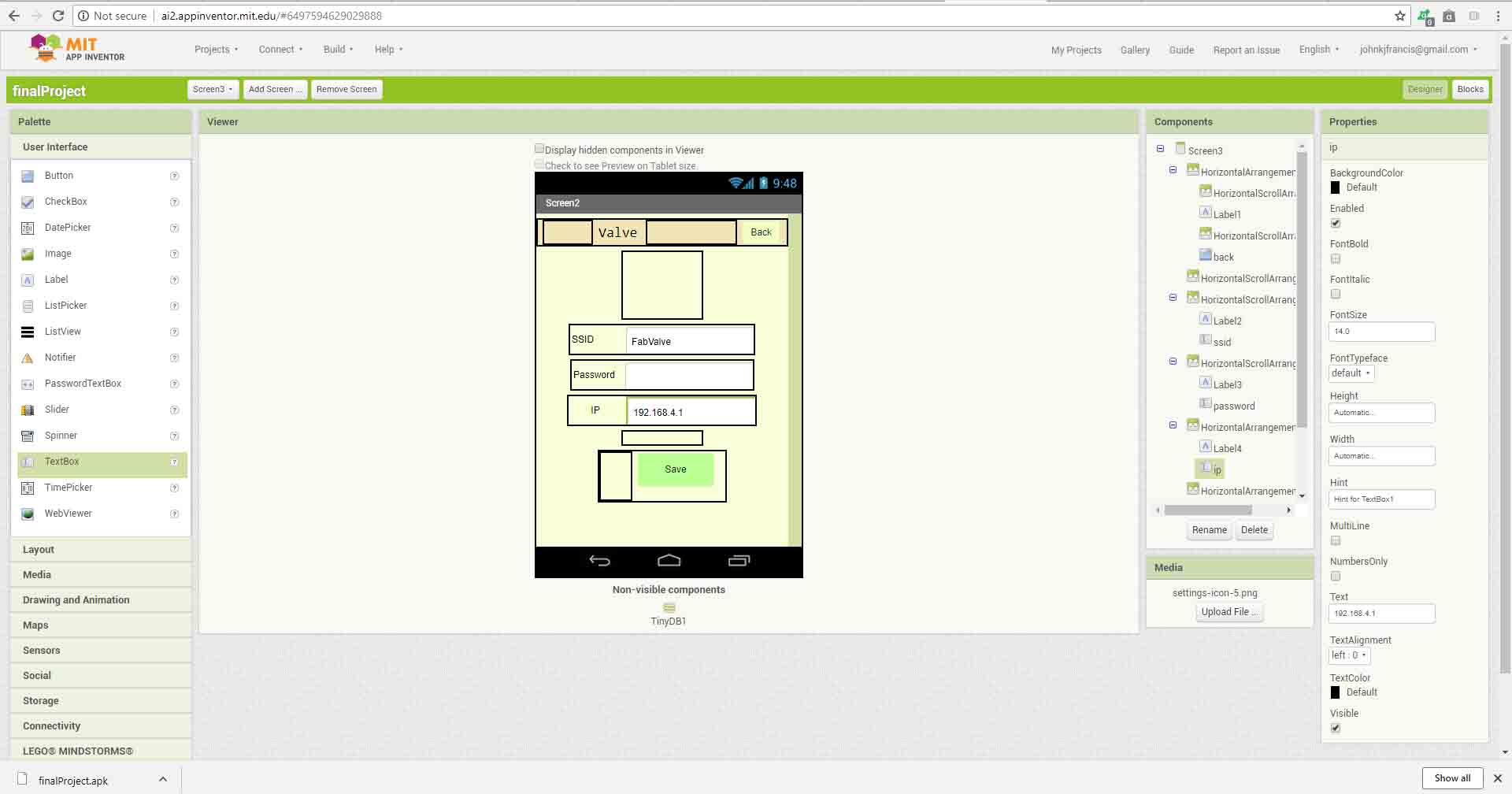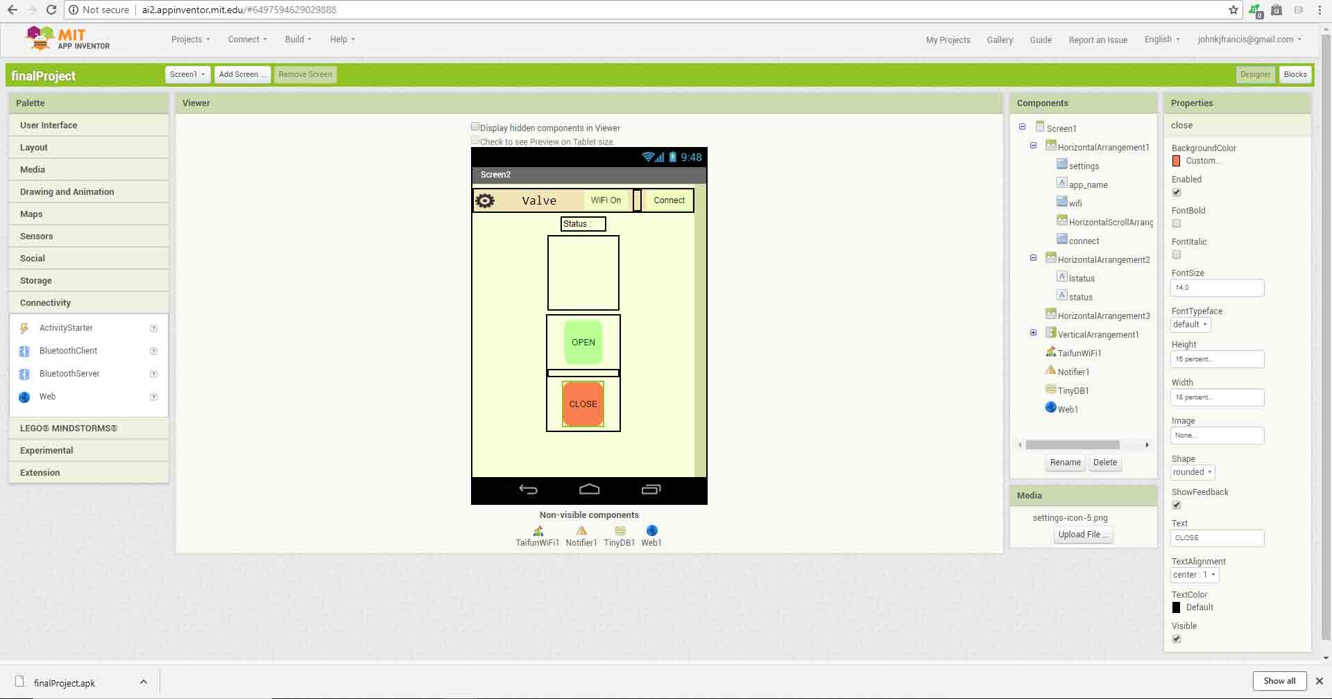 I used MIT app inventor 2 to create my application .Since I needed to have access to my device's WiFi hardware I used a WiFi Manager Extension namedTaifunWiFi for app inventor.