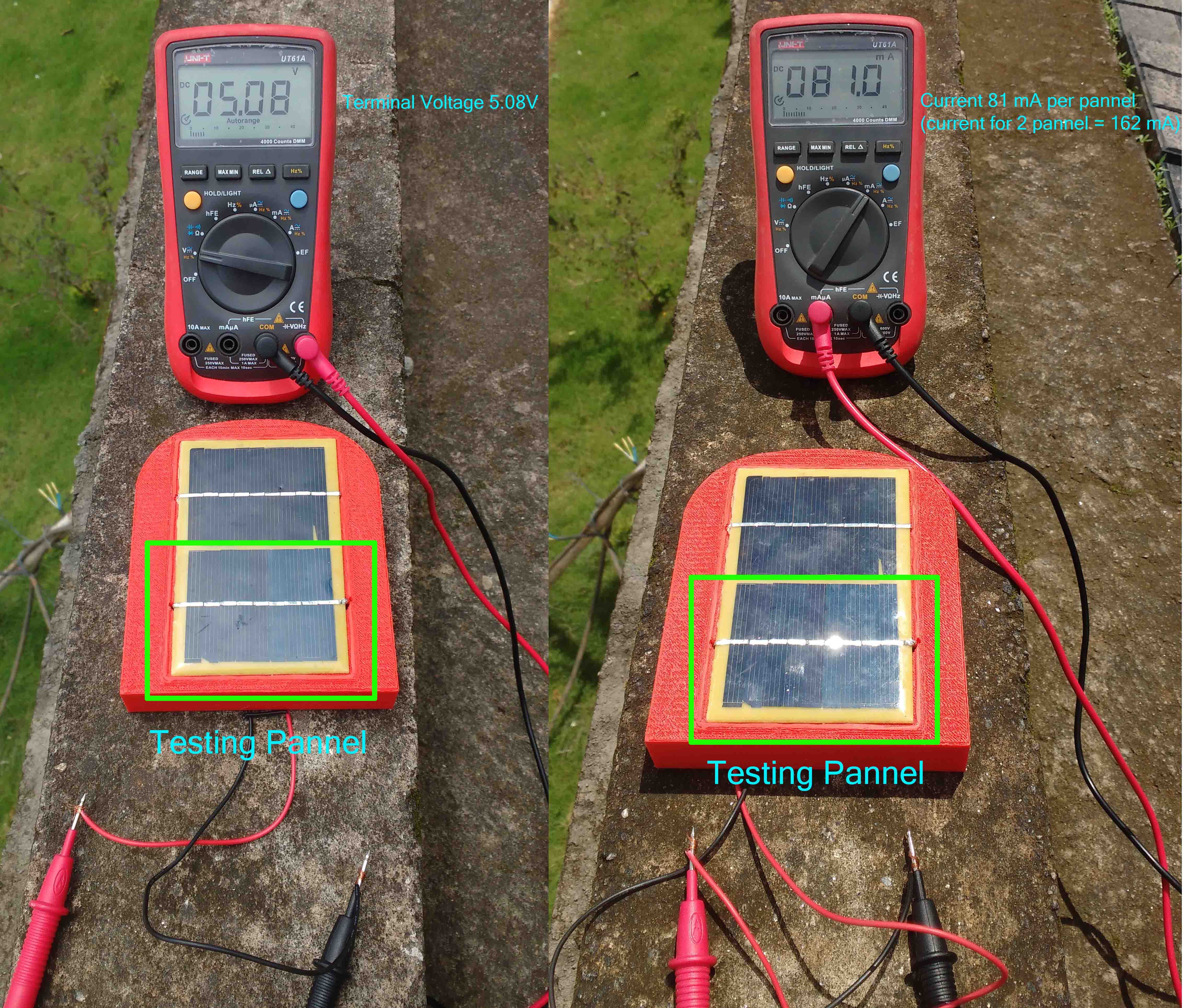 I found that during the peek hours I gets 5.08v at 162 mA(from 2 panels) from my solar panels.