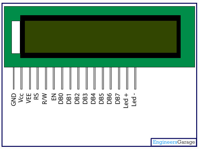 A 16x2 LCD means it can display 16 characters per line and there are 2 such lines. In this LCD each character is displayed in 5x7 pixel matrix. This LCD has two registers, namely, Command and Data.