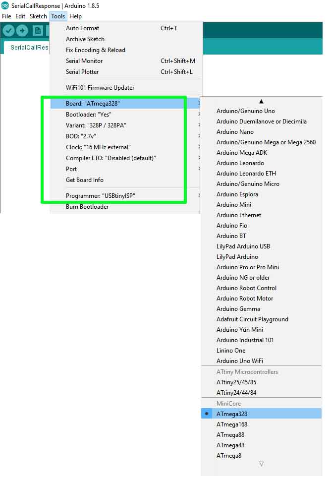 C:\Program Files (x86)\Arduino\hardware\tools\avr/bin/avrdude -CC:\Users\amc\AppData\Local\Arduino15\packages\MiniCore\hardware\avr\2.0.1/avrdude.conf -v -patmega328p -cusbtiny -e -Ulock:w:0x3f:m -Uefuse:w:0xfd:m -Uhfuse:w:0xd6:m -Ulfuse:w:0b11110111:m