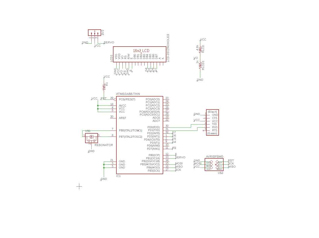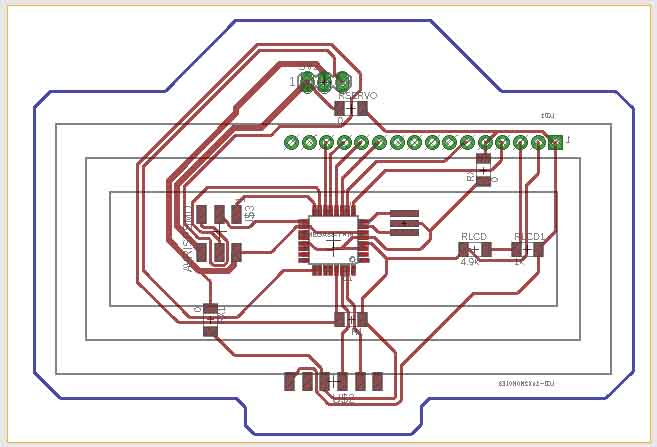 For the output week I decided to make a PCB to interface an LCD display and a servo motor with Atmega 328p microcontroller .