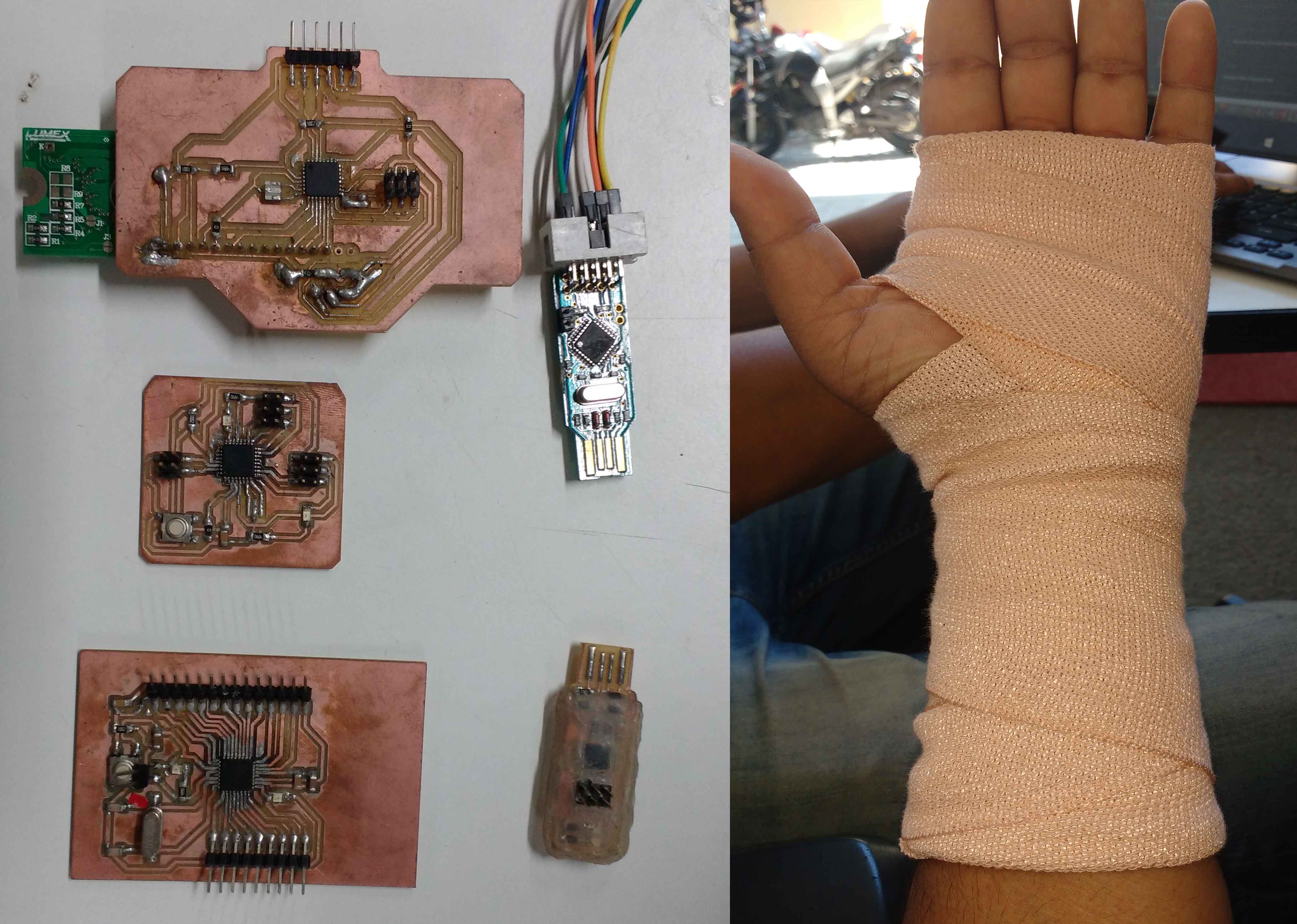 But I have done something wrong later, maybe uploaded with a wrong fuse now the microcontroller is brick . Maybe some problem with the external oscilator circuit also .Since our desoldering hot air gun is not working currently I forced to mill a new board .mean while I unscrewed the hot air gun and found it is malfunctioning due to the heater coil is broken. Since we can't solder it since it is heating .I made a loop with the wire itself and now its working . Though the heat gun is working now i decided to use the new board anyway.