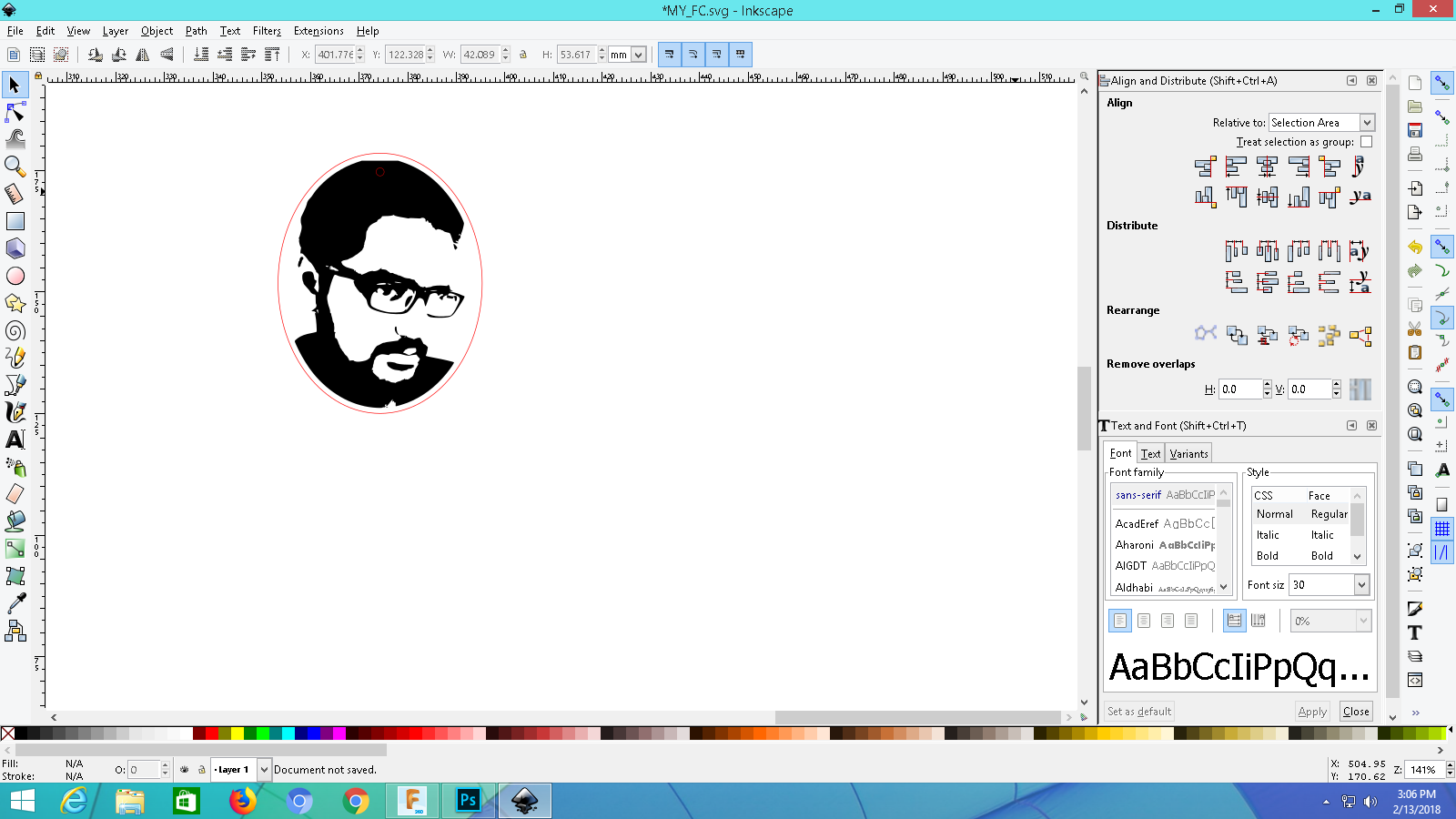 As a test cut I decided to engrave a photo of mine in a piece of wood.i decided to use inkscape for making the vector file .I took a photo of mine and opened it on inkscape. Go to the path menu -> Trace Bitmap -> Choose gray (Scan in 8 steps) -> press ok . Choose one with suitable brightness and contrast.Remove the unwanted images.