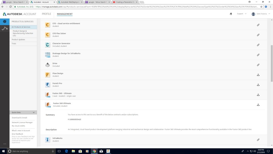 I choose to use autodesk Fusion 360 for this project . Fusion is free for 3 years for students . So i go to my autodesk accound and downloaded it .I is much easier to install and use.