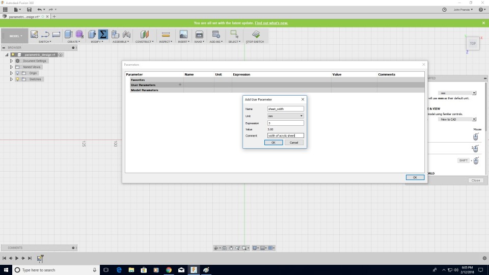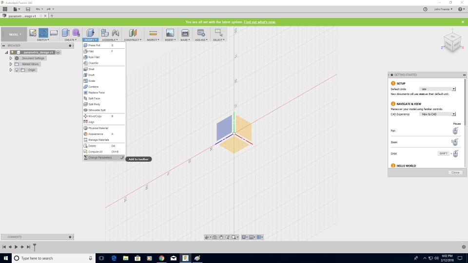 Since we have to do parametric drawing I decided to set some parameters initially itself. Go to the modify -> Change Parameters
