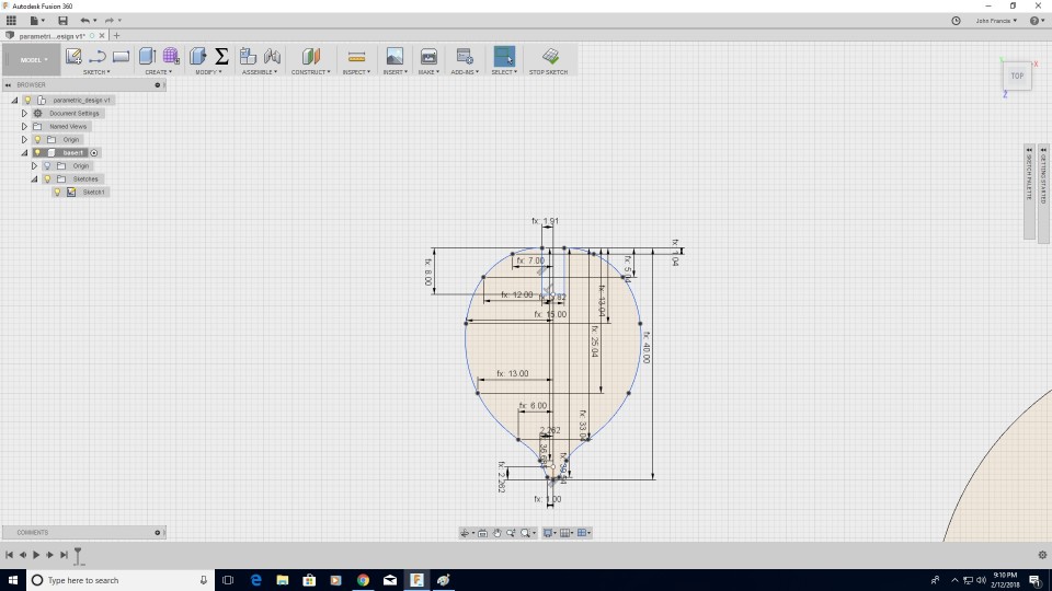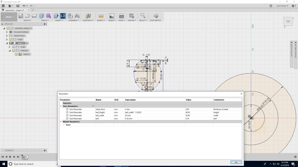 I created some essential parameters and started my designing.I wanted to populate my designe my lamp shade with different sized leafs .So I wanted to change the size of my leaf except the 4mm grove at the top when I change the width of my leaf. I designed every other parameter of the leaf as a function om my width .Now if change the width of the leaf The whole leaf will rearrange itself by keeping the aspect ratio and the width of the grove unchanged.