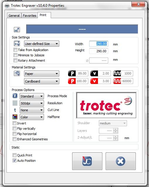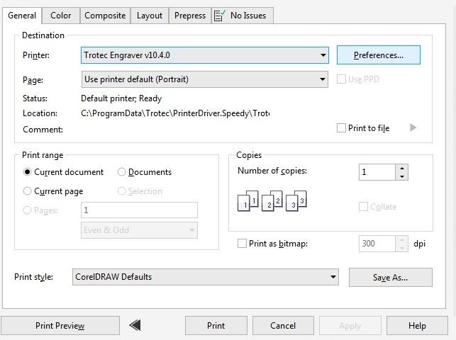 Select to print the document(Ctrl + P).Choose "Trotic Engraverv10.4.0" as printer
