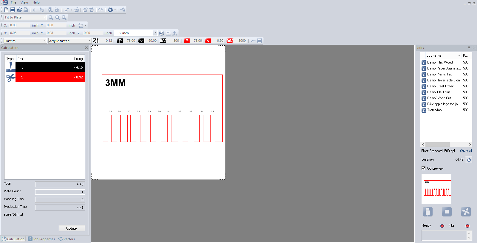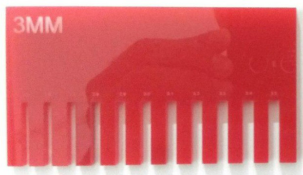 This is our kerf scale By inserting a piece of acrylic in each slot we cauld find the dimension for perfect press fit