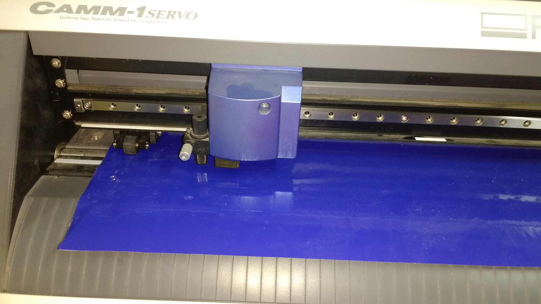 A vinyl cutter is a type of computer-controlled machine. Small vinyl cutters look like computer printers. The computer controls the movement of a sharp blade like a knife. This blade is used to cut out shapes and letters from sheets of thin self-adhesive plastic (vinyl).