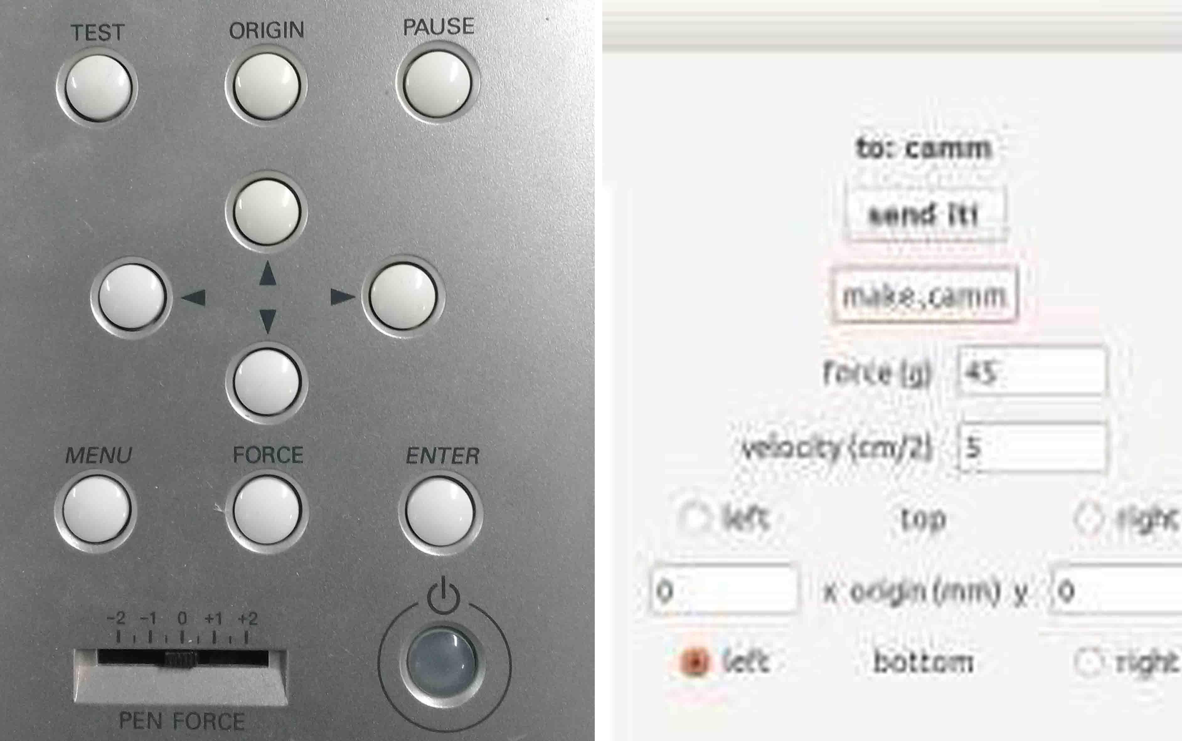 Set the force and velocity properly according to your test cuts . I have choosen force as 45 and velocity as 4 cm/second.there after move the head to the proper position to set origin double press on the origin button to set the position