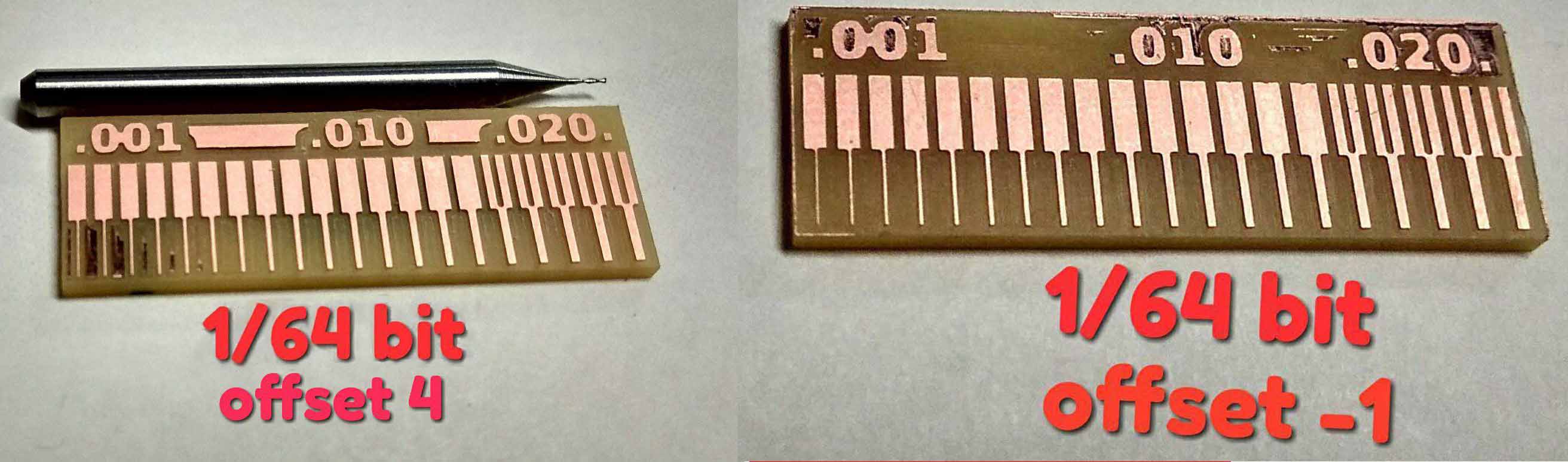 Initially we milled our test pad with 1/64 bit.We choose to mill one board with offset as 4 and another with offset -1.