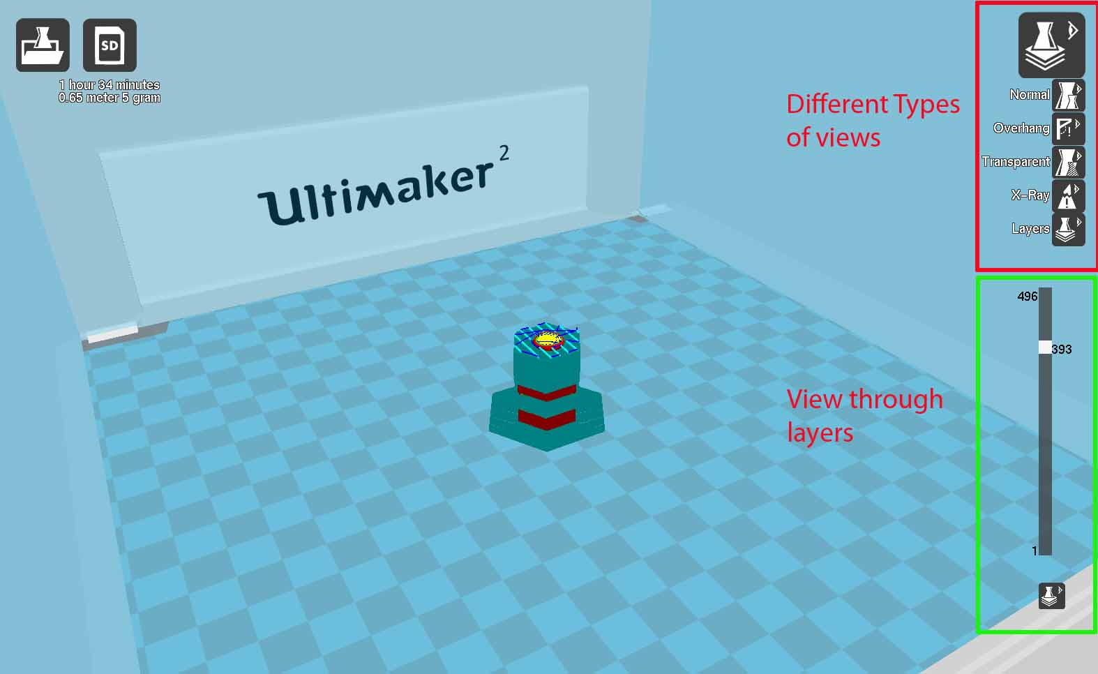 You can go through the layers and different types of views.you can check wether there is any overhang or any internal structural problems.Then upload the file to the SD card