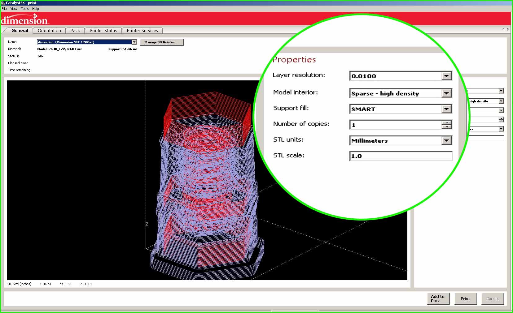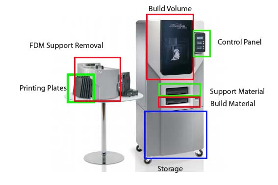 "Dimension sst 1200es" is an industrial grade 3D printer with excellent adhesion between layers and very good build quality. it support dual extruder so that we can print build material of one type and support material with a different chemial property .