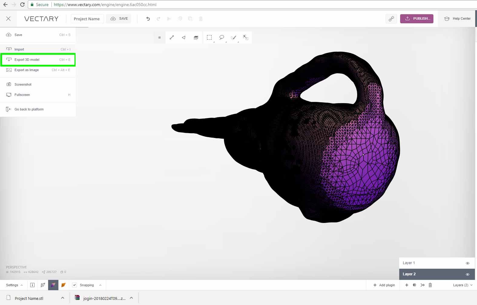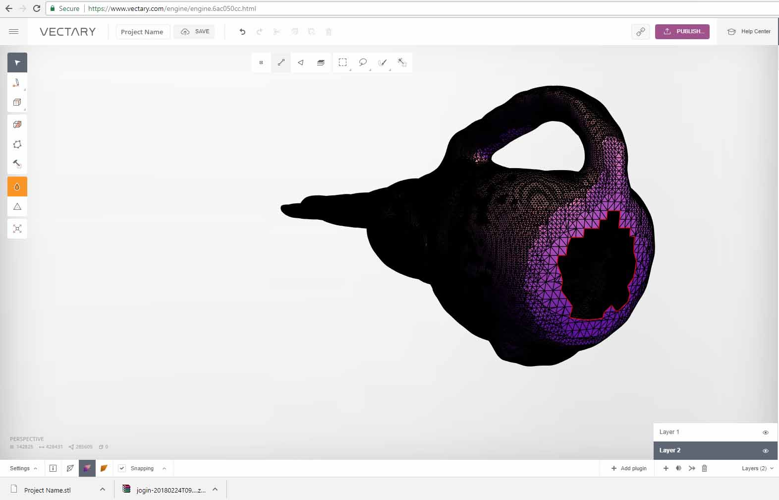 The model we obtained during the last process is a 3D mesh geometry .Since we didn't scanned the bottom area there is a hollow section under the model .We need to clear the void and need to convert it in to a solid model.
