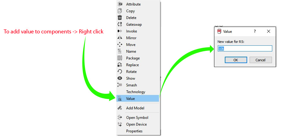 You can add values to components by rigth click and choosing value .Then choose an appropriate value for the component