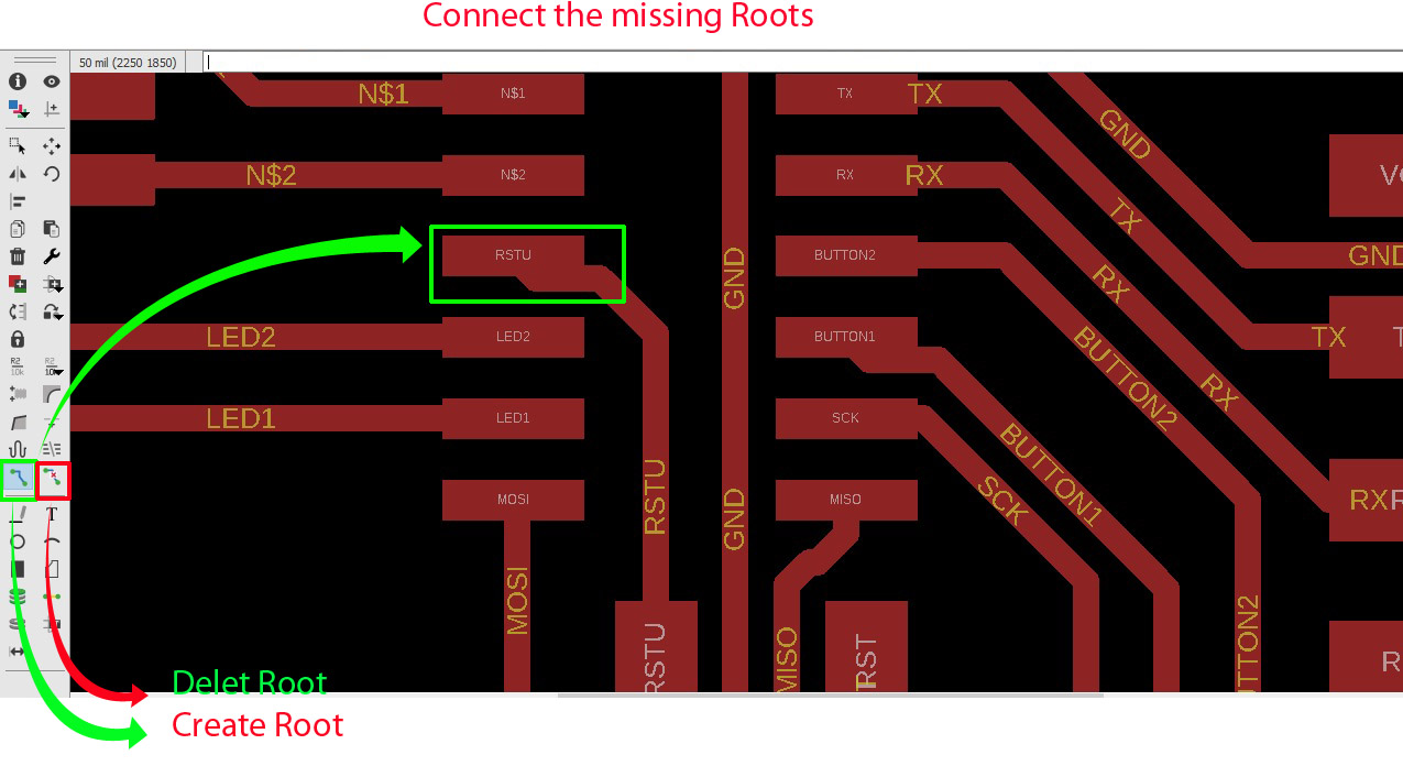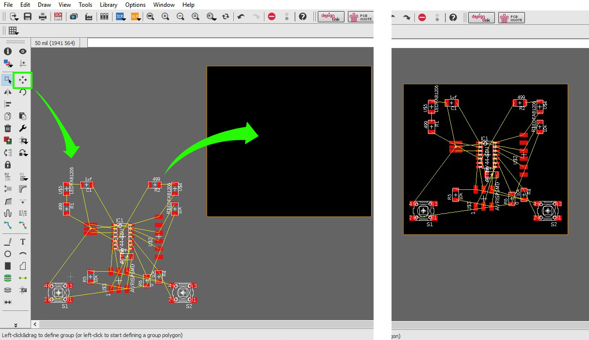 Remark! If it seems impossible to connect with out jumpers choose a 0 ohm resistor to jump over wires .But in eagle we can't add components in board so you have to go back to schmatic and add component in the appropriate place and grt back to the board.After some rearrangements its done .
