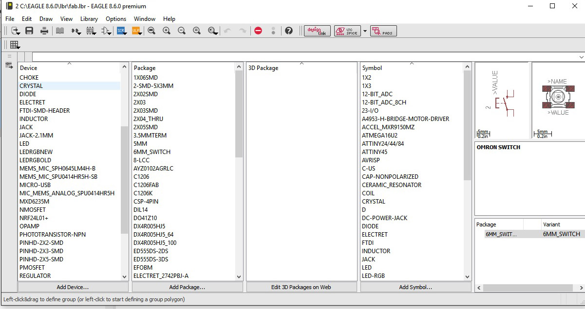 To start redrawing the board, I used this tutorial First thing to do is install Eagle, after that, set it up. Once Eagle is installed, download the Fab library that provides you with all the components you need for this board. It can be downloaded here.