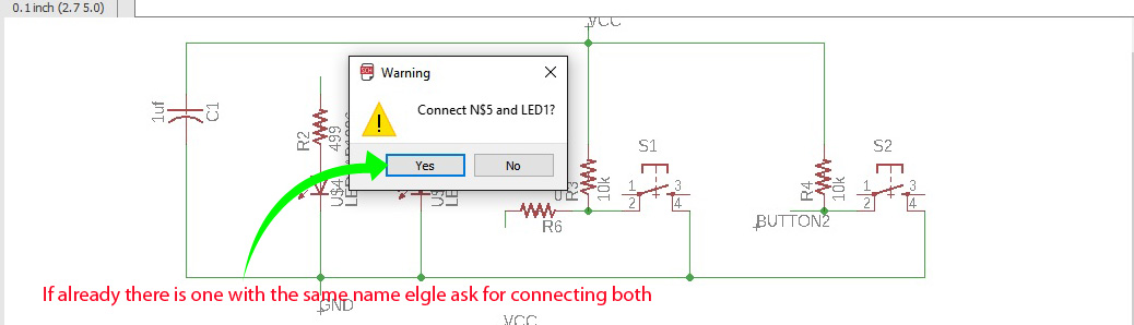 If you have allredy used that name for another component eagle will ask you to connect it with the other one.